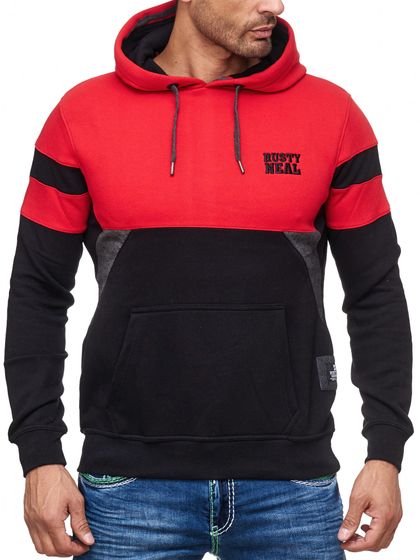 Sweat à capuche pour homme, style sportif, colorblock, avec poche kangourou, référence 19041, rouge.