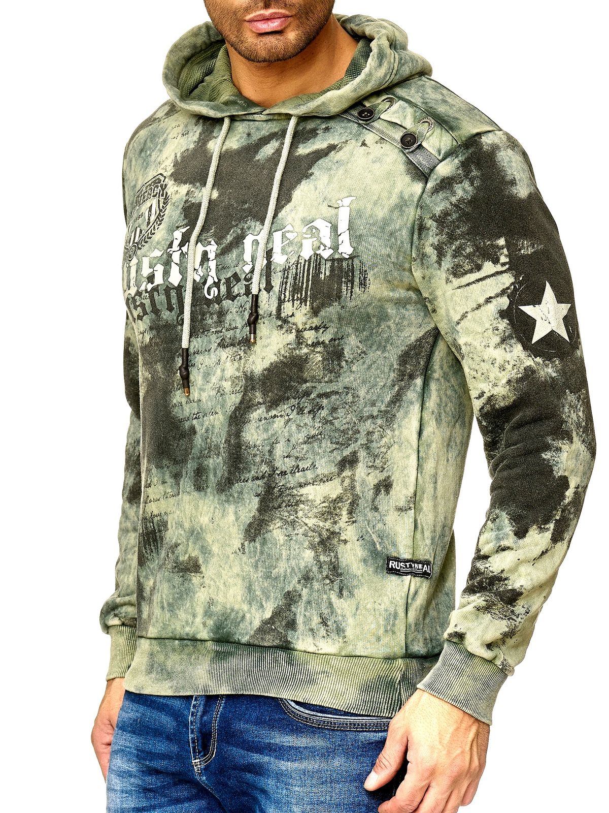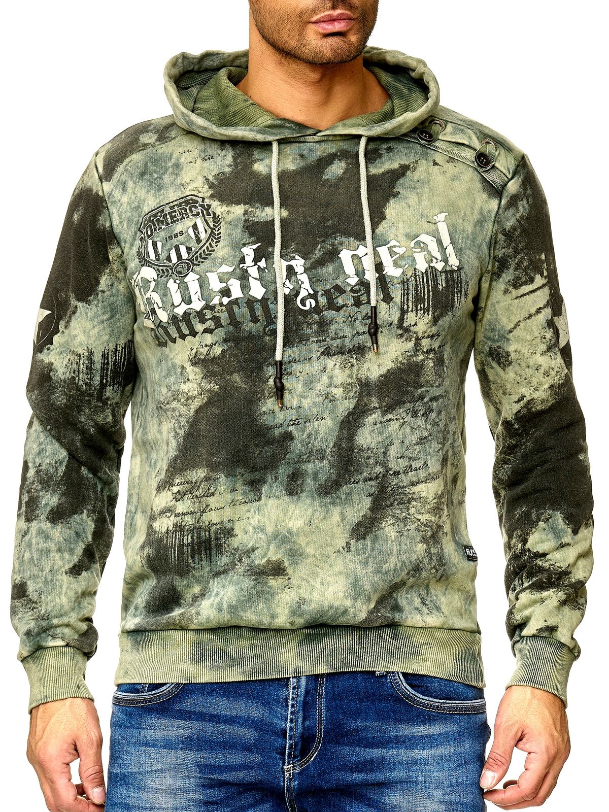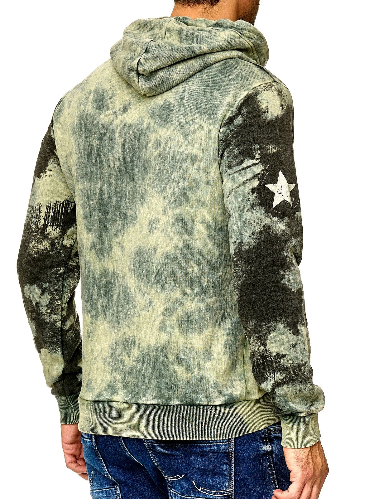 Sweat à capuche tie-dye pour homme, pull à capuche avec imprimé vintage, référence 19113 kaki