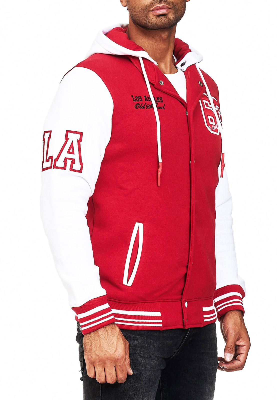Sweat à capuche décontracté pour homme, style universitaire, 6876-1 Rouge/Blanc