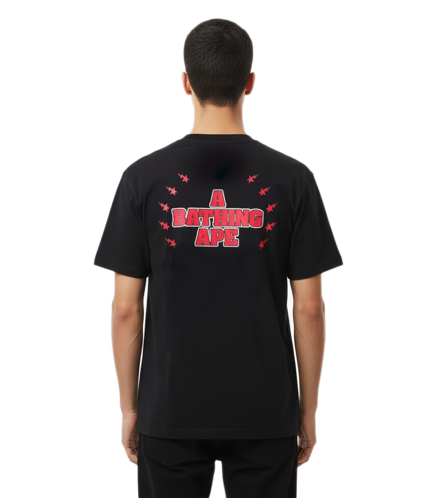T-shirt A Bathing Ape BAPE coupe décontractée avec strass, imprimé au dos, noir
