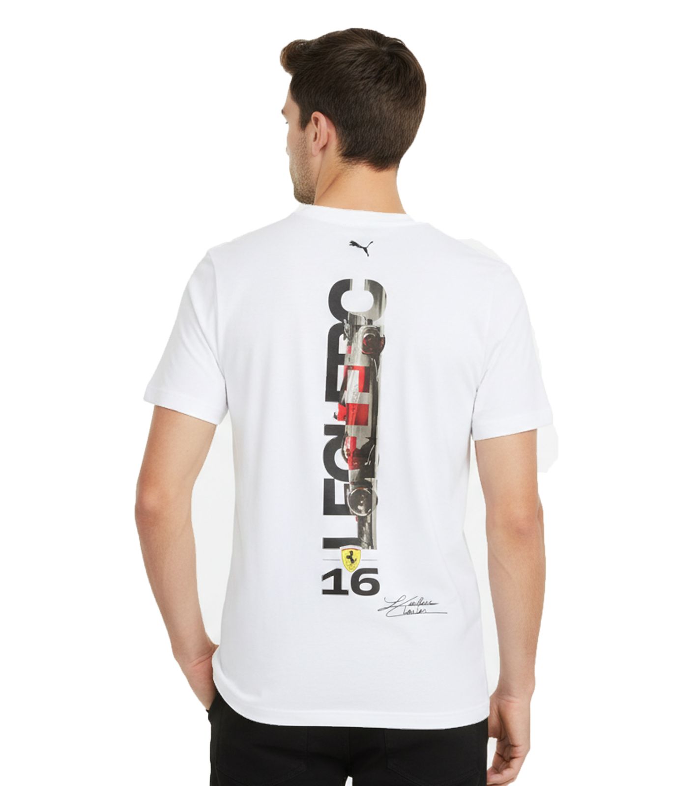 T-shirt PUMA x Scuderia Ferrari Charles Leclerc pour homme, en coton blanc, référence 625656 02