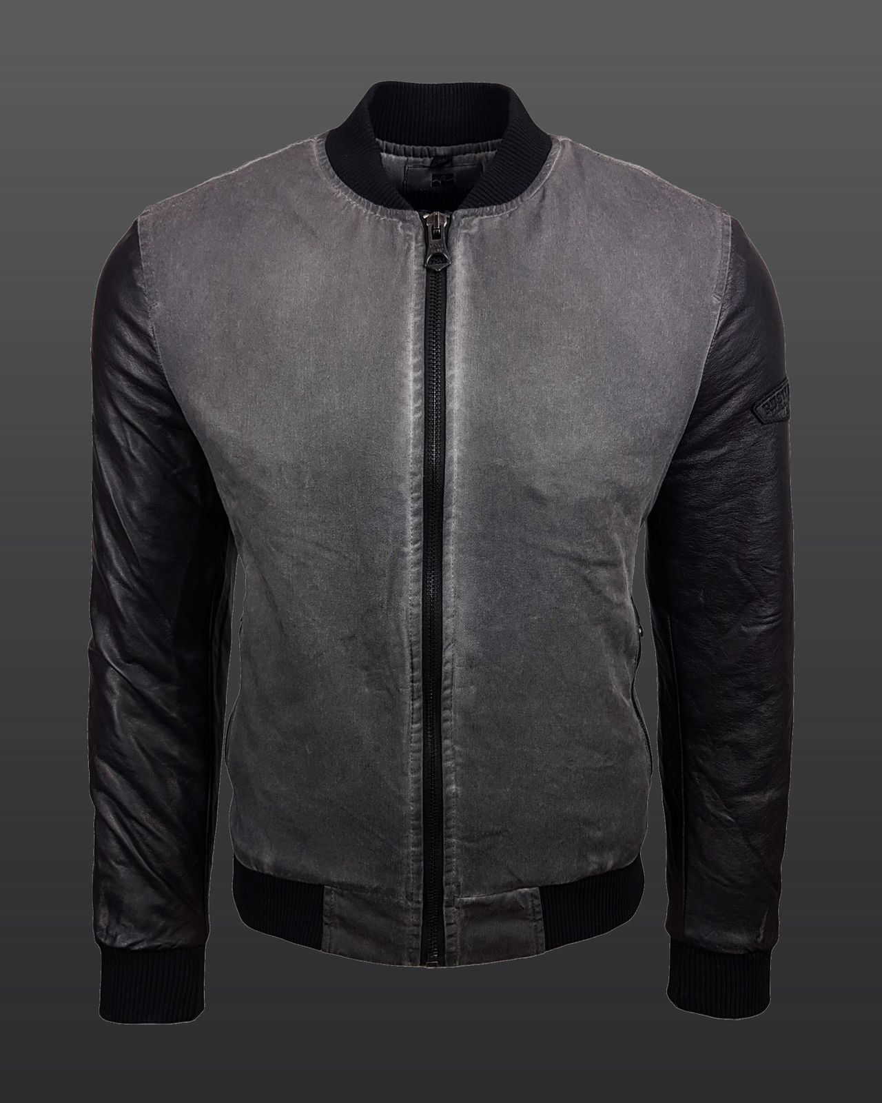 - Un mélange original de matières : veste en tissu et manches en similicuir