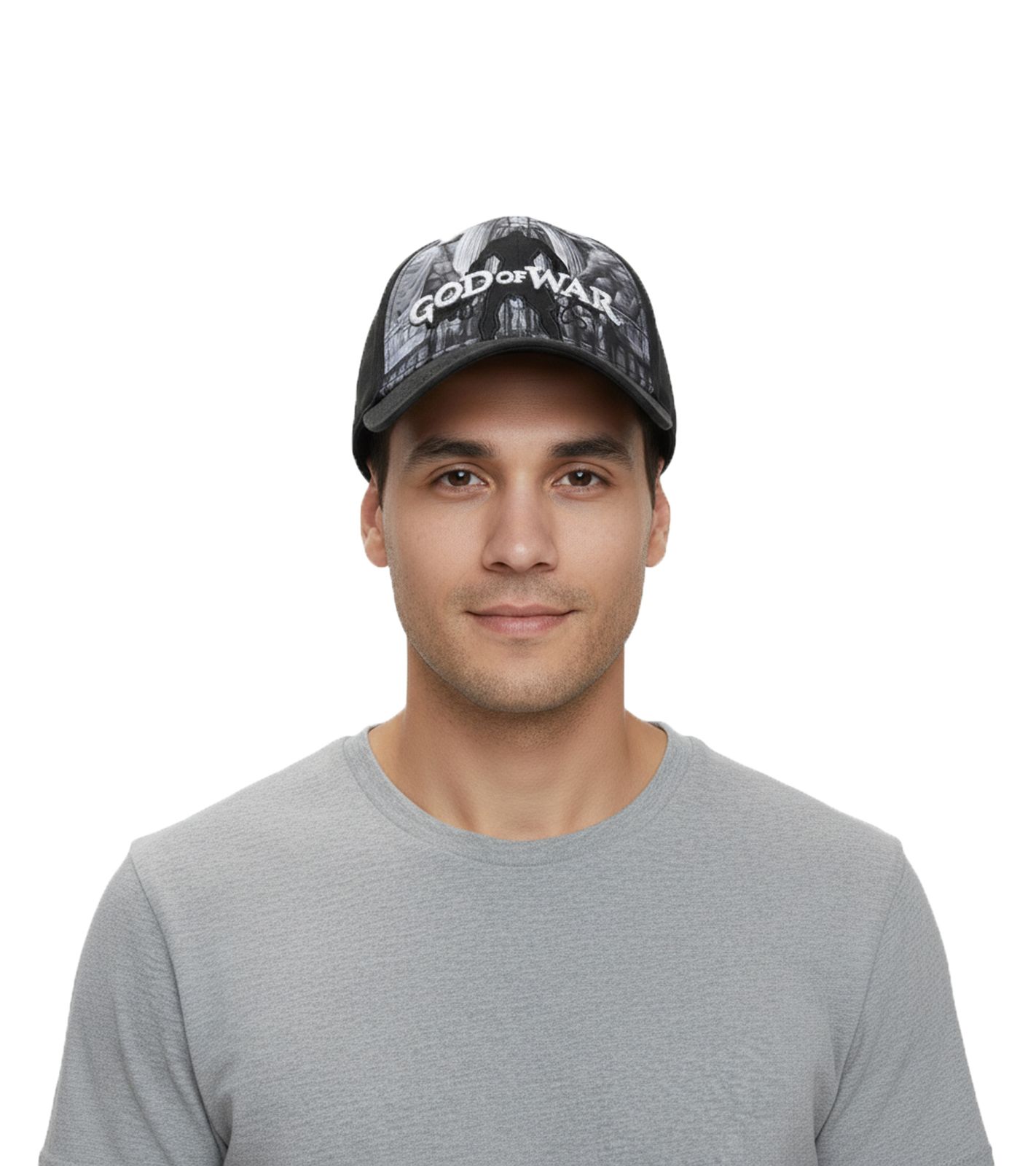 GOD OF WAR Unisex Trucker-Cap aus dem Gaming-Bereich Base-Cap mit Silhouette TC125186GCW0 Schwarz/Grau/Weiß