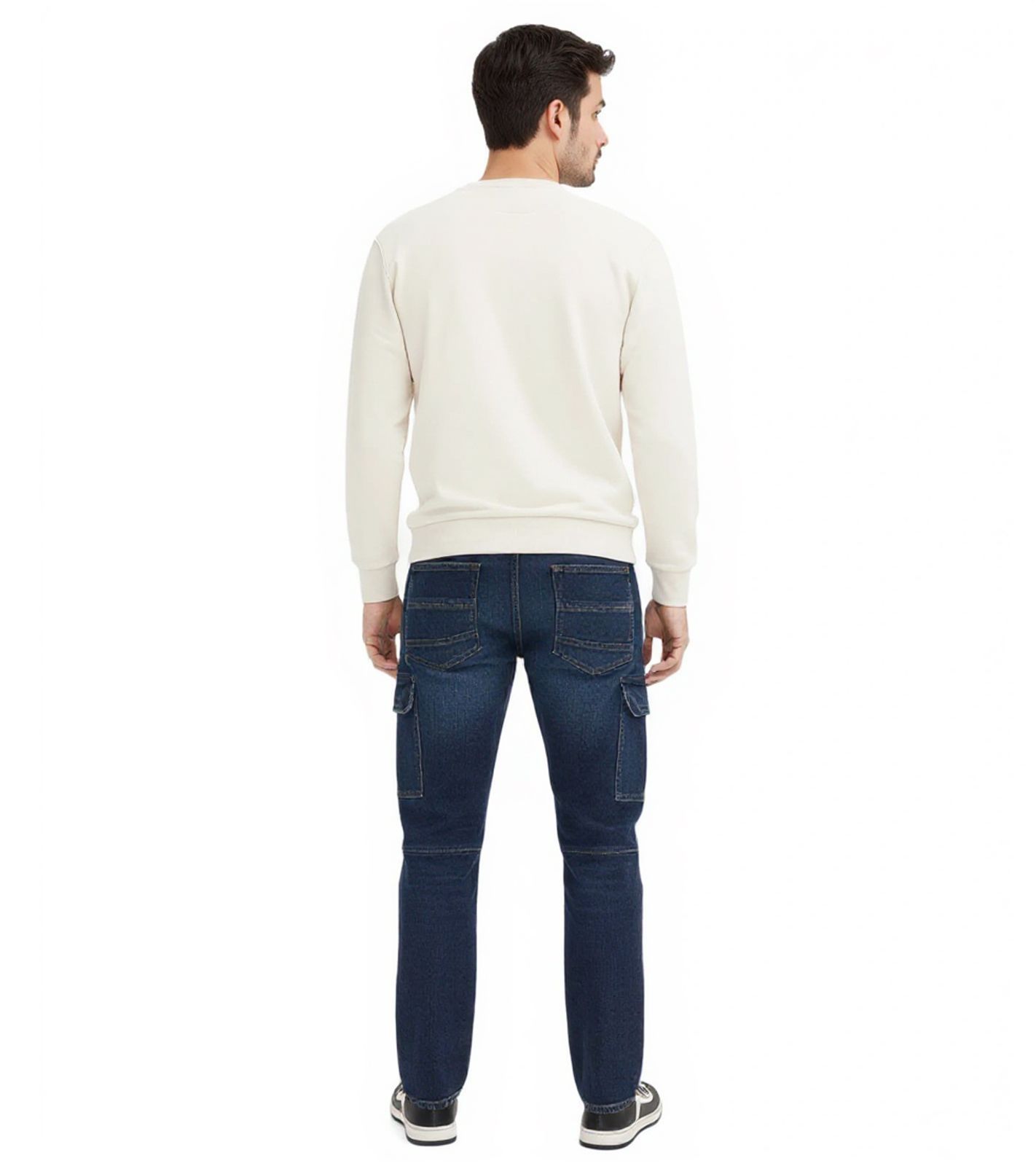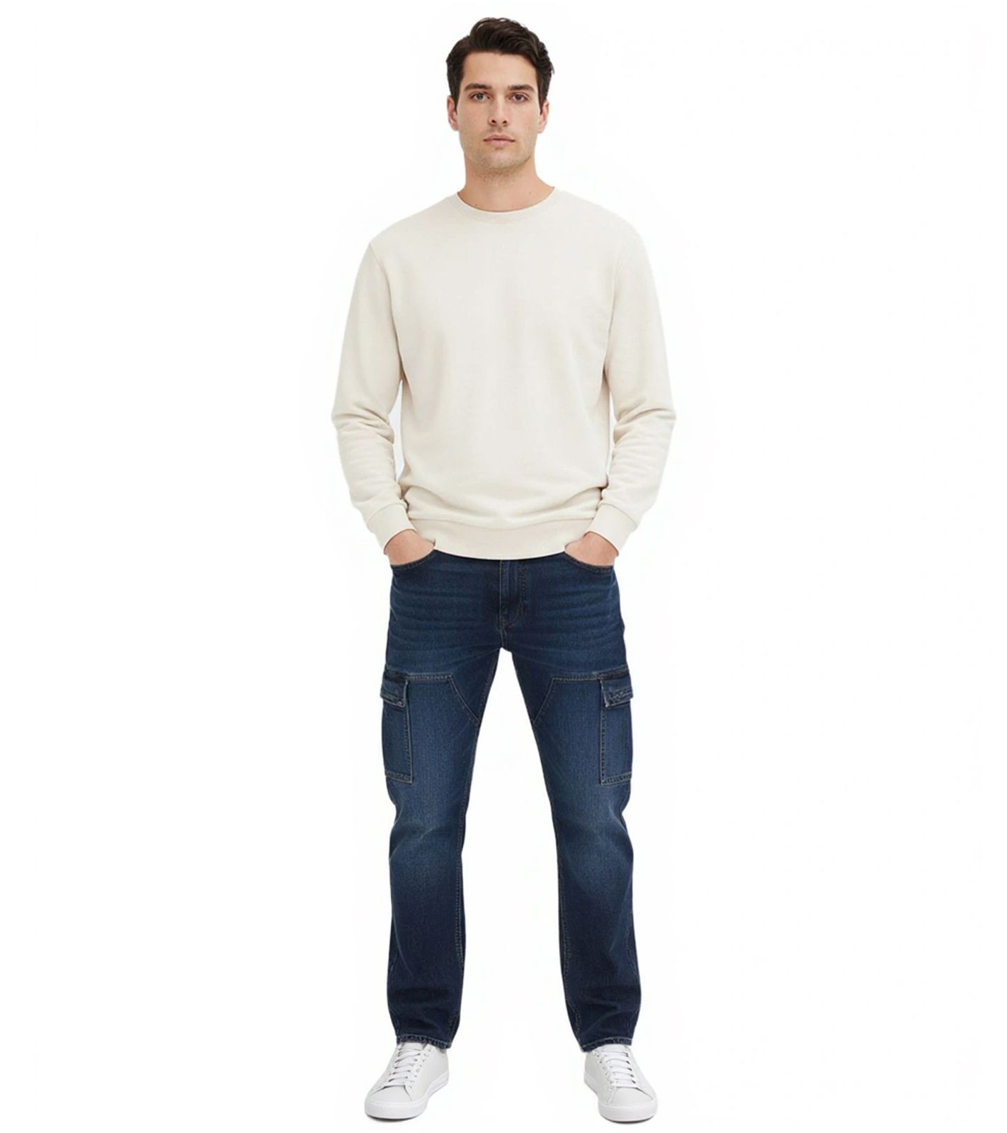 Herren Cargo-Stretch-Jeans nachhaltige Denim-Hose mit mehreren Taschen Loose Fit 960776 Dunkel-Blau