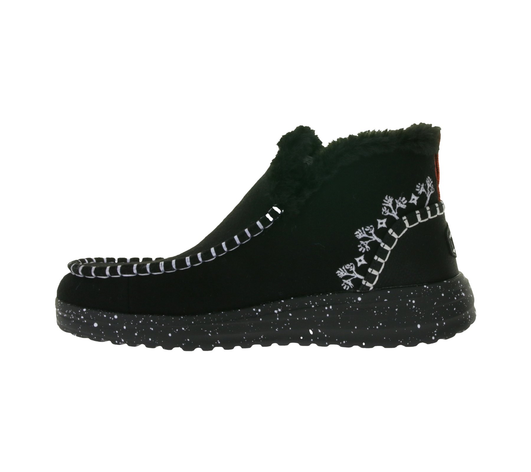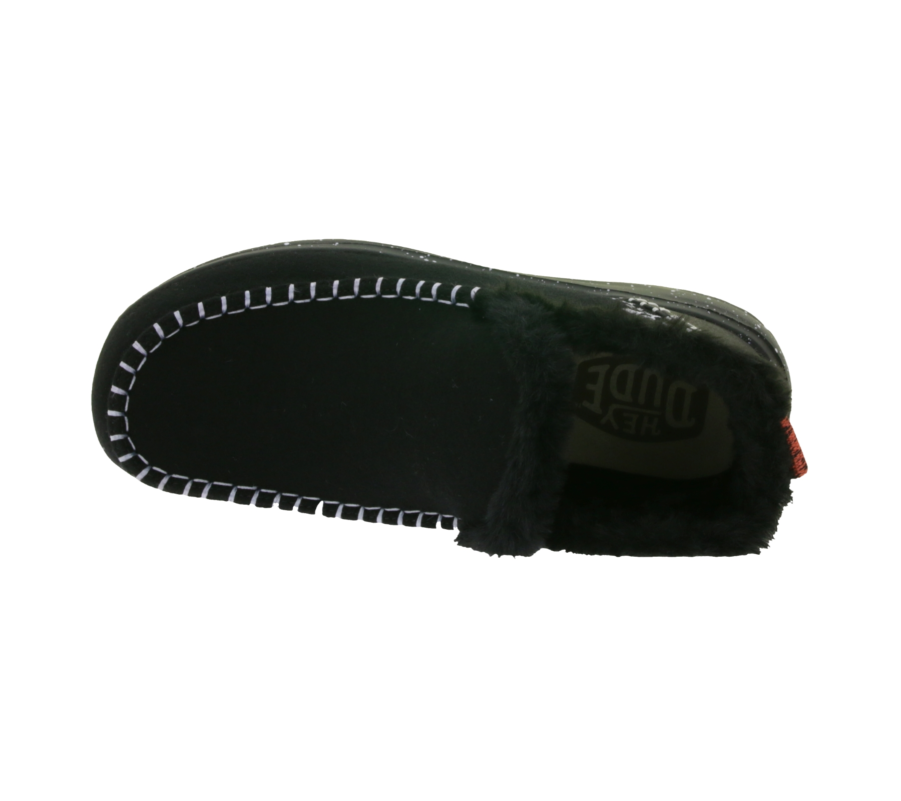 HEY DUDE Denny Faux Damen Schlupf-Stiefelette mit Kunstlammfellfutter und Wechselfußbett 40208-001 Schwarz