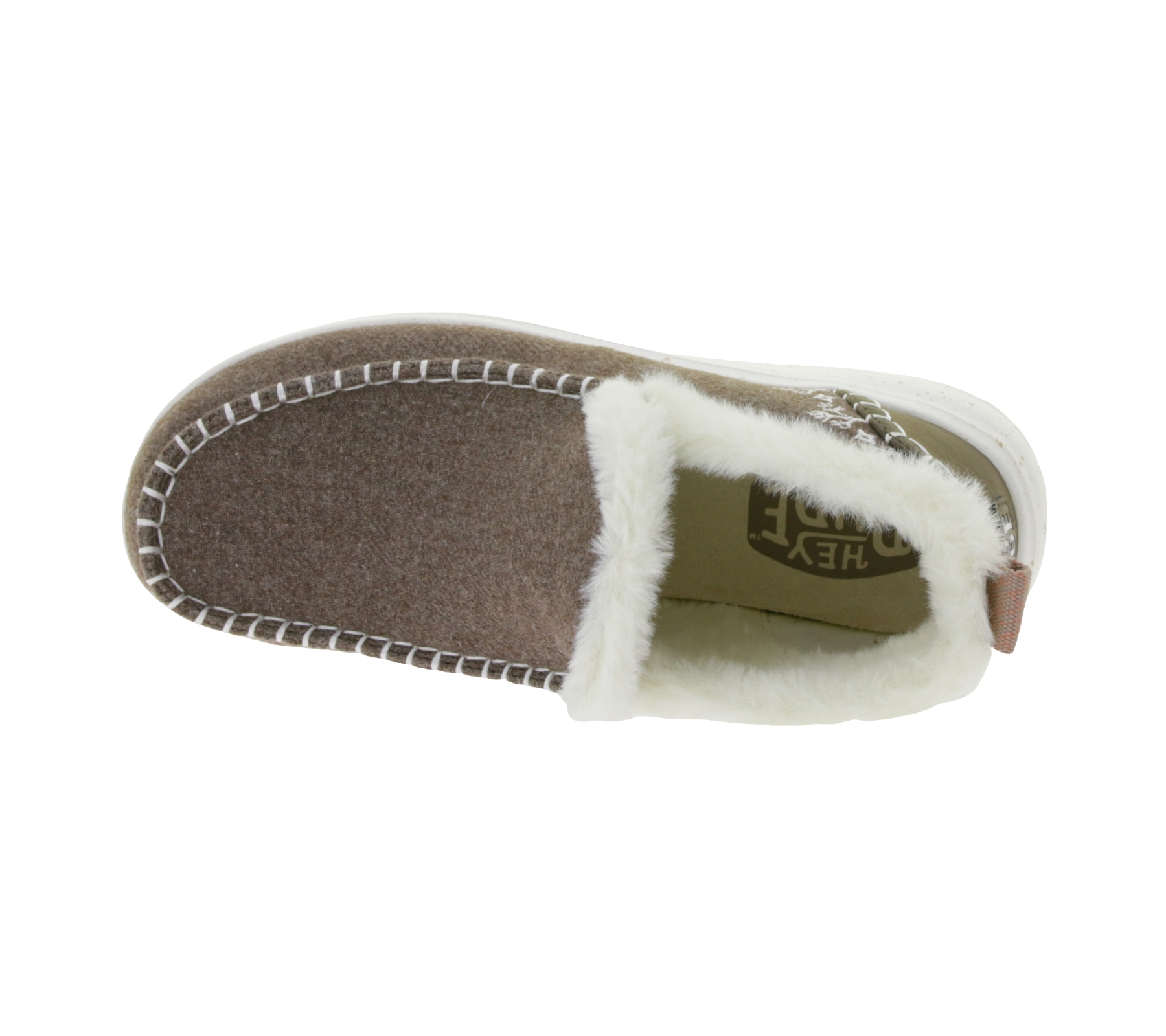 HEY DUDE Denny Faux Damen Schlupf-Stiefelette mit Kunstlammfellfutter und Wechselfußbett 40208-267 Braun