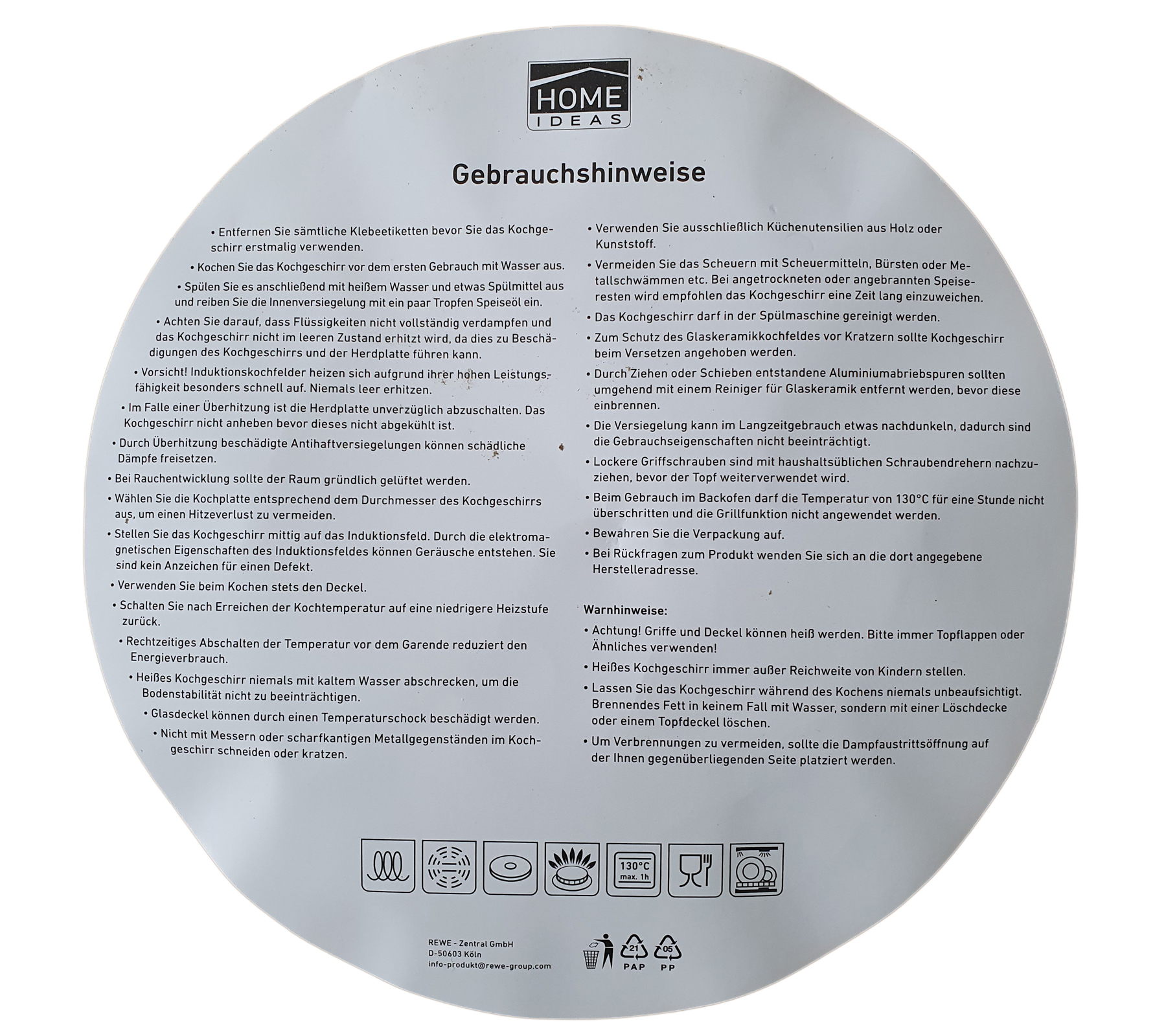 - Hinweis: bei Benutzung im Backofen die Temperatur von 130°C nicht überschreiten