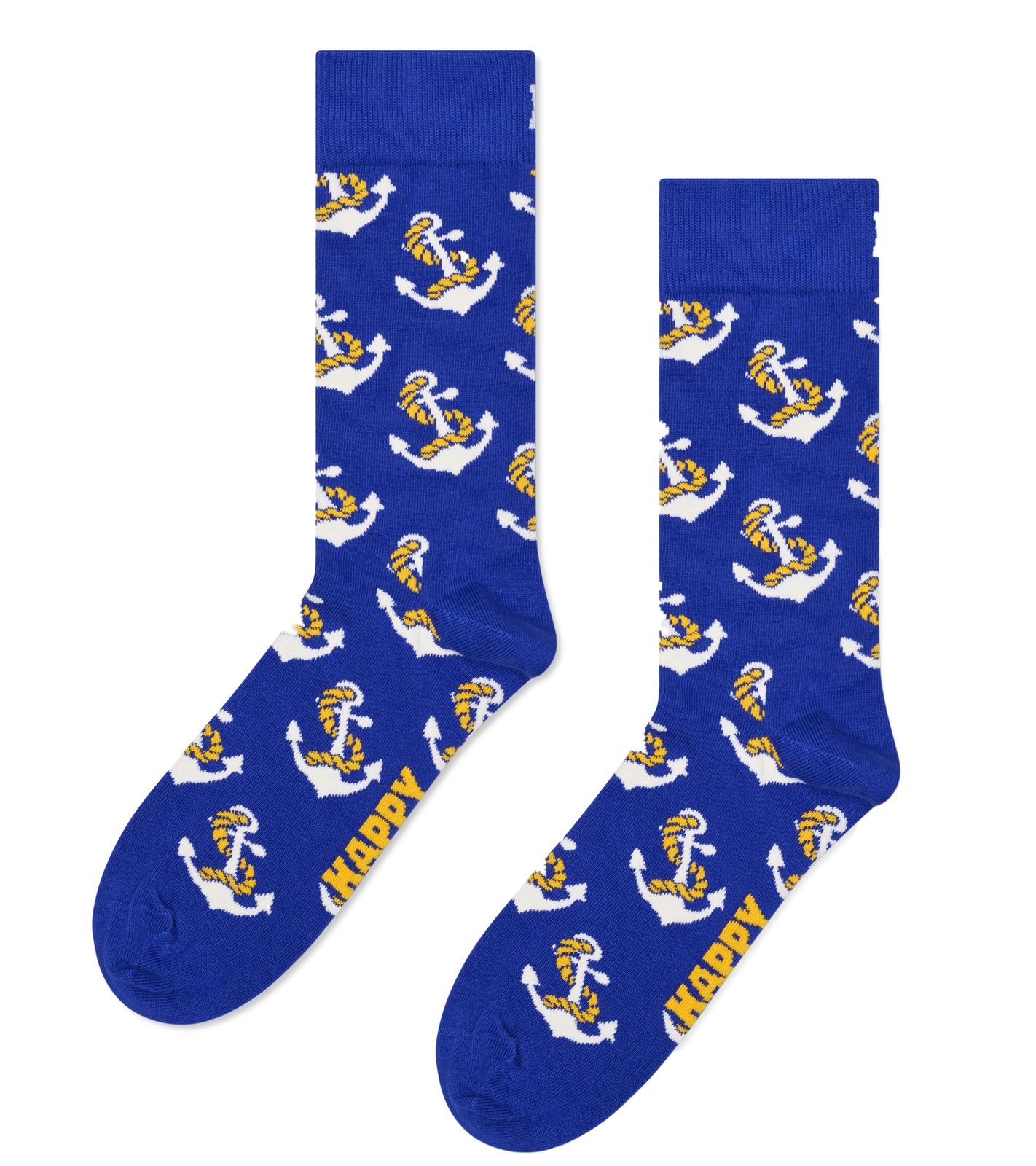 1 paio di calzini Happy Socks Anchor Socks da uomo con motivo ad ancora nautica, in cotone, per tutti i giorni, P002597 Blu/Ecru/Giallo