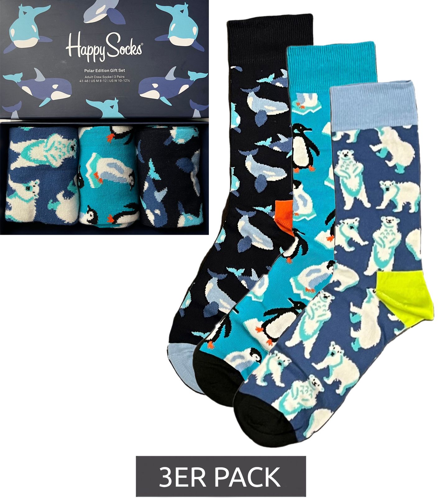 9 paia di calzini in cotone Happy Socks in confezione regalo "Polar Edition" con orsi polari, pinguini e balene in blu/blu navy/nero o "Sausage & Beer" con salsiccia, birra e righe in blu/blu navy/rosso