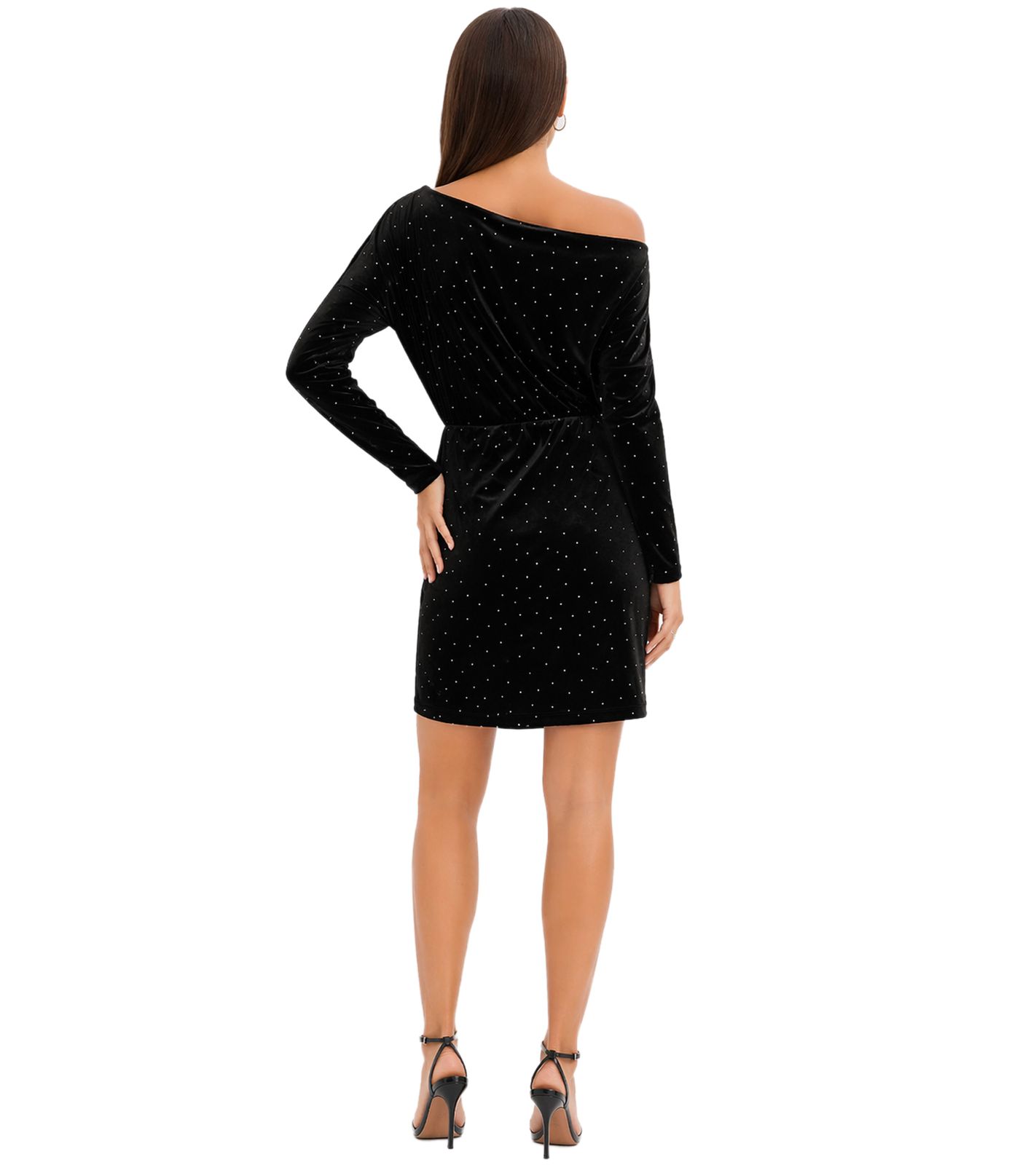 Abito corto da donna in velluto fluente e glitter, abito da sera 964640 Nero