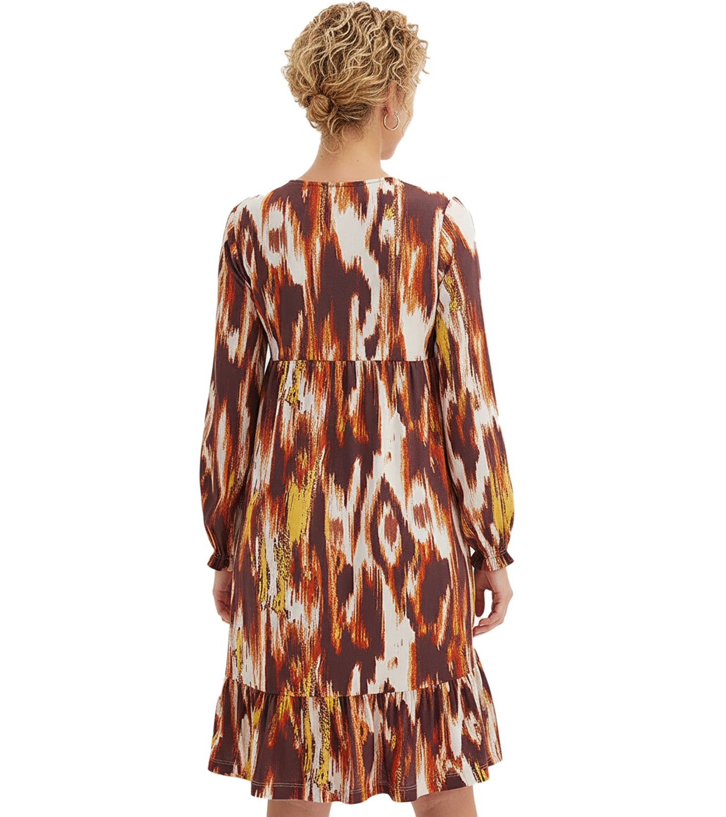 Lo stile con volant e arricciature conferisce a questo abito tunica in jersey un tocco trendy
