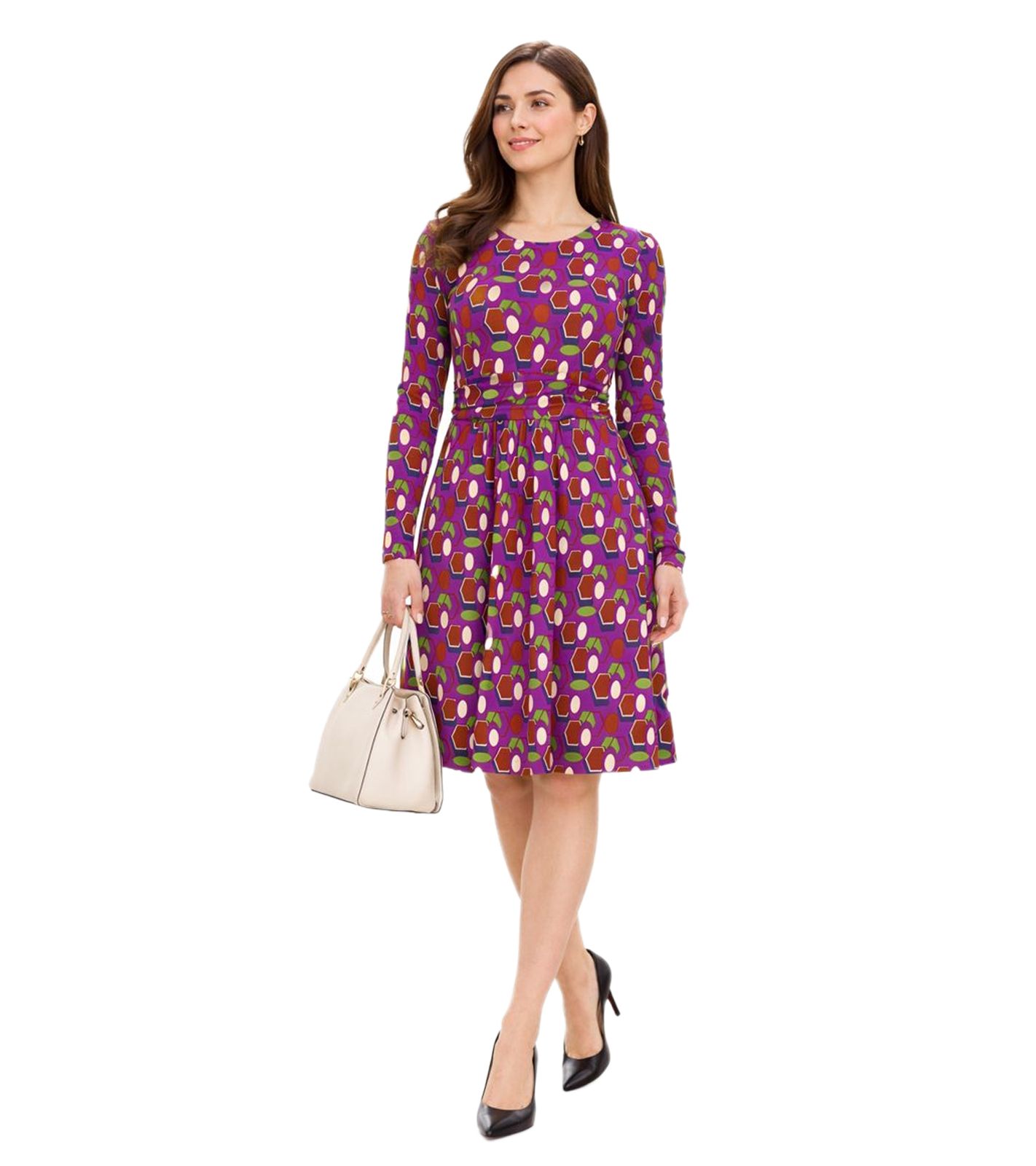 Aniston SELECTED Abito estivo da donna, abito midi con motivi geometrici, abito da festa 39733762, viola/marrone/verde