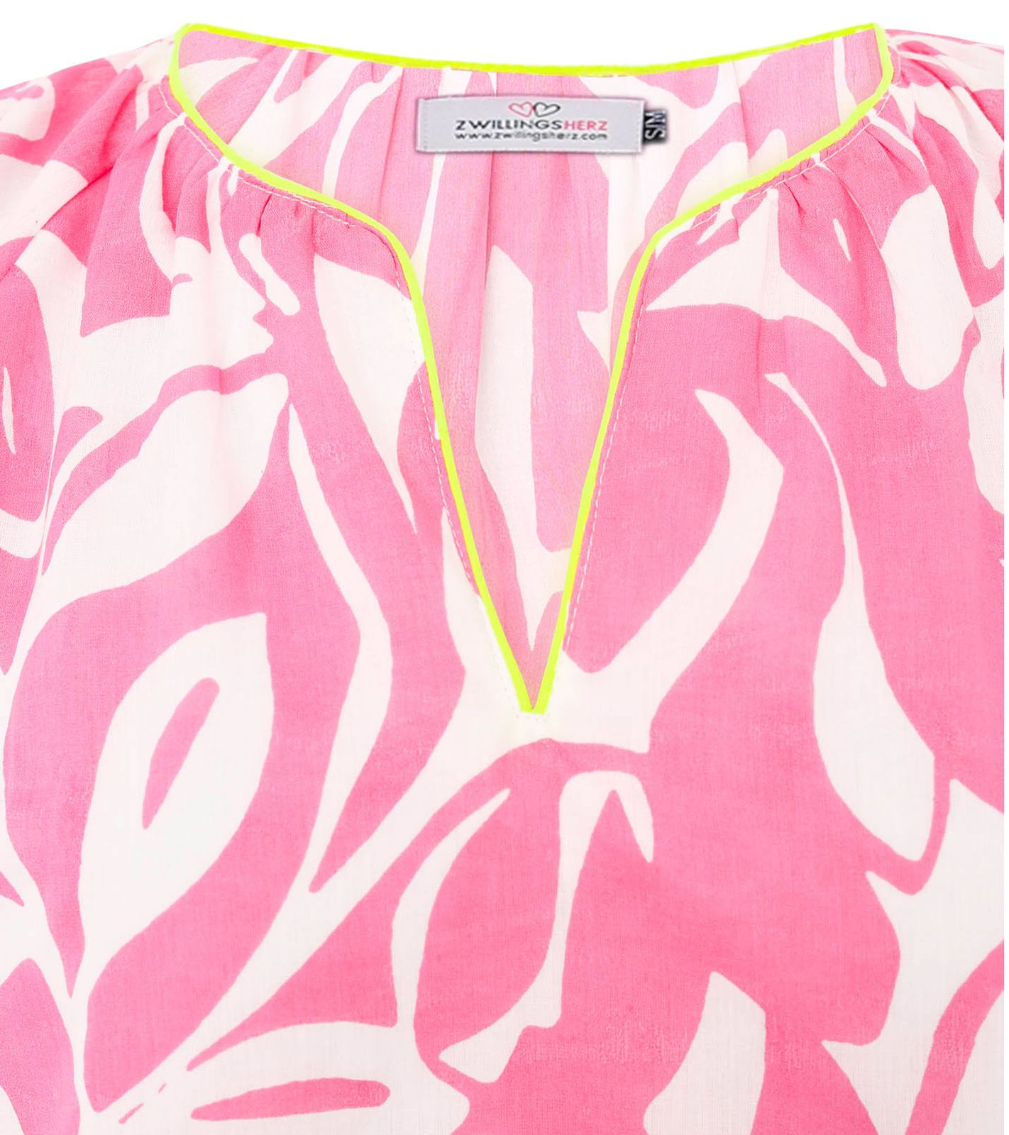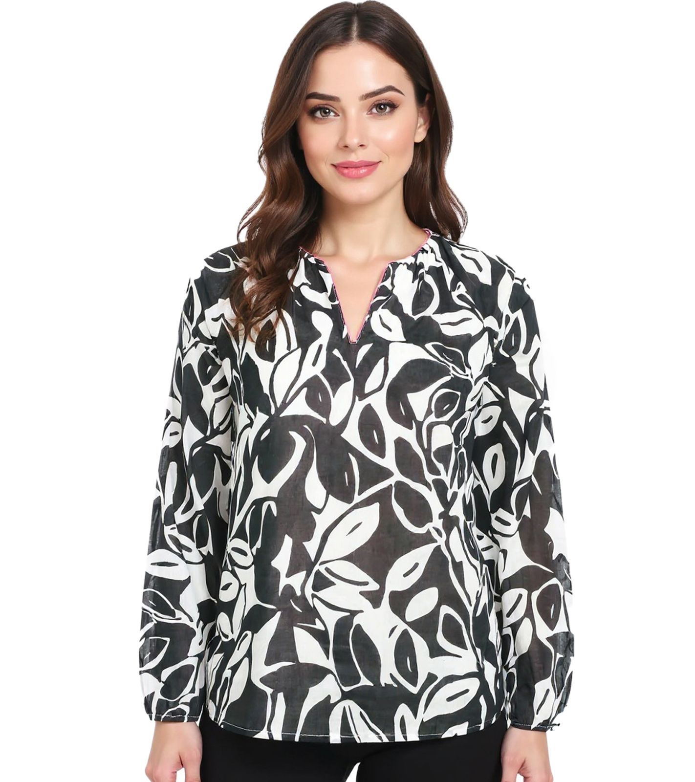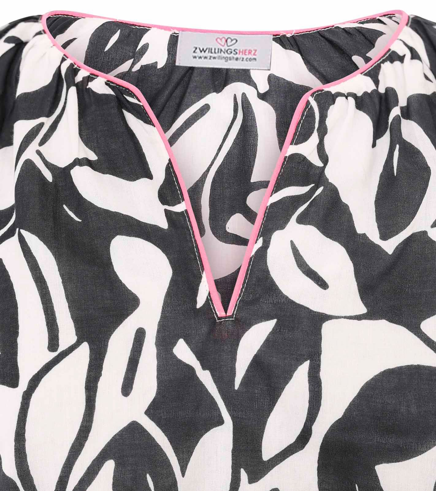 Blusa estiva da donna ZWILLINGSHERZ con motivo a foglie, in cotone a maniche lunghe 33229, verde, nero, rosa o blu