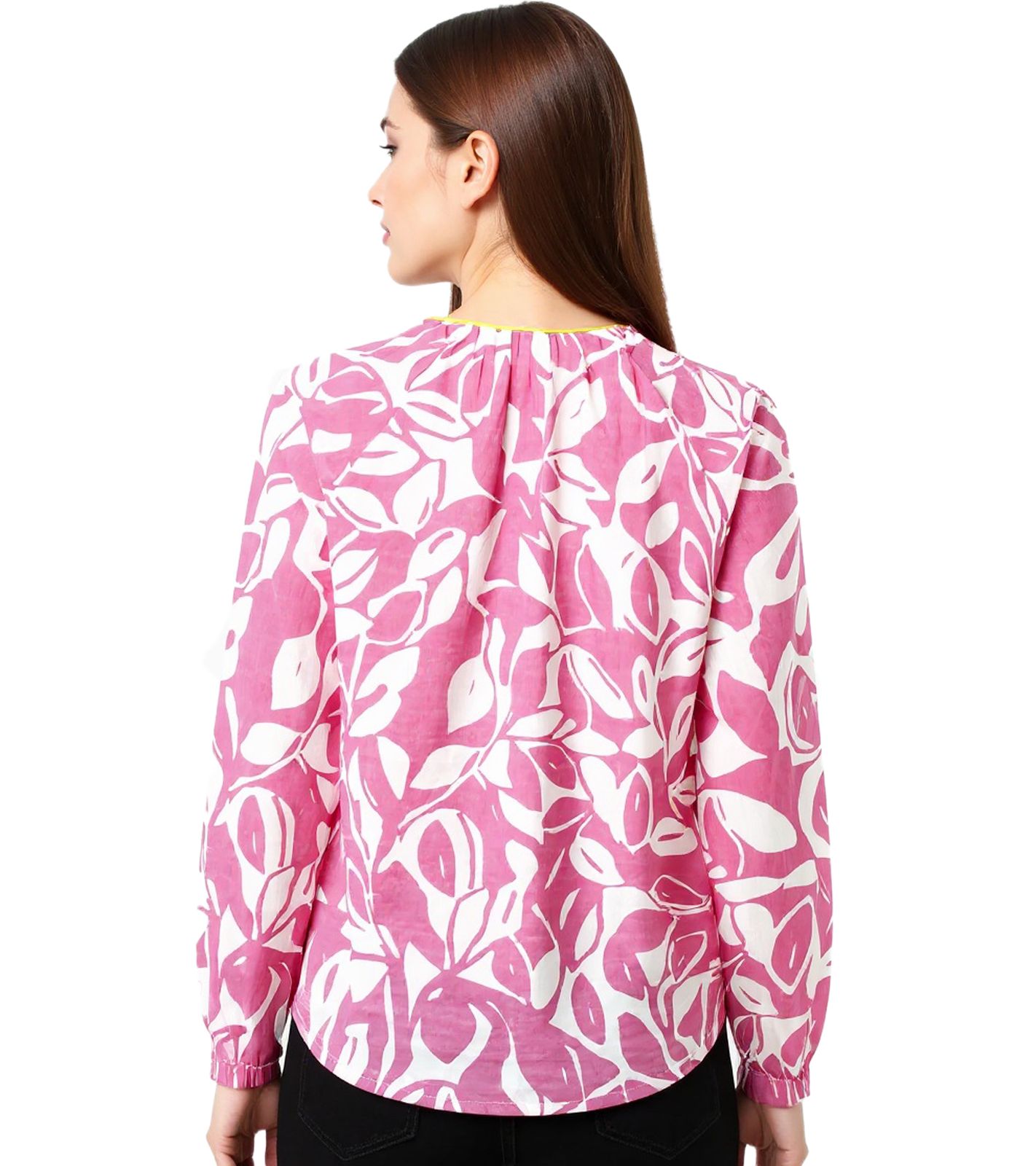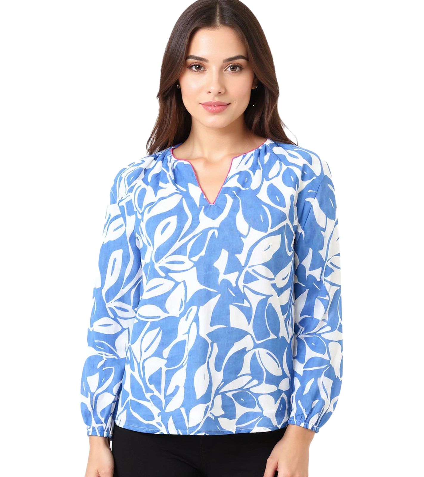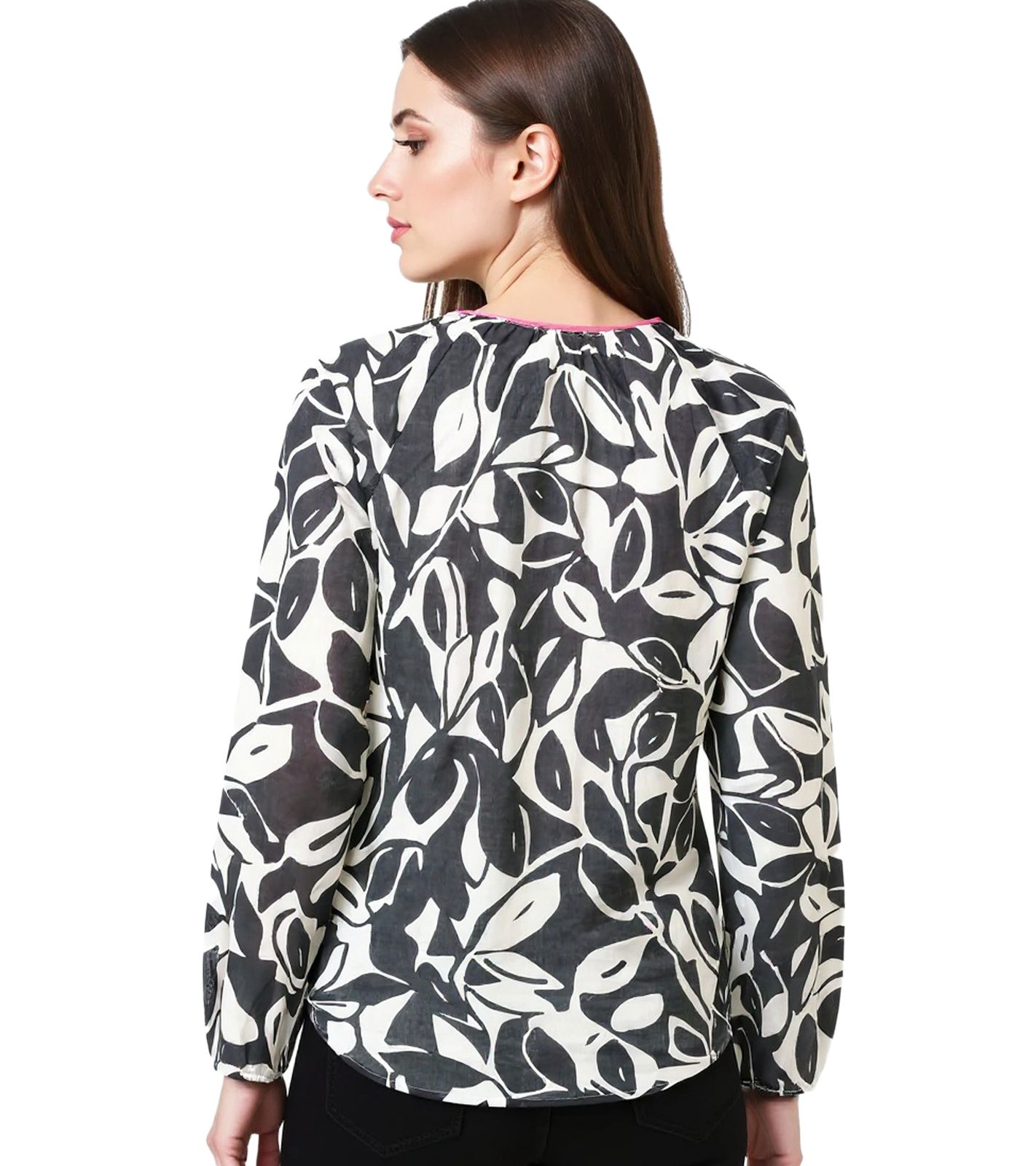 Blusa estiva da donna ZWILLINGSHERZ con motivo a foglie, in cotone a maniche lunghe 33229, verde, nero, rosa o blu