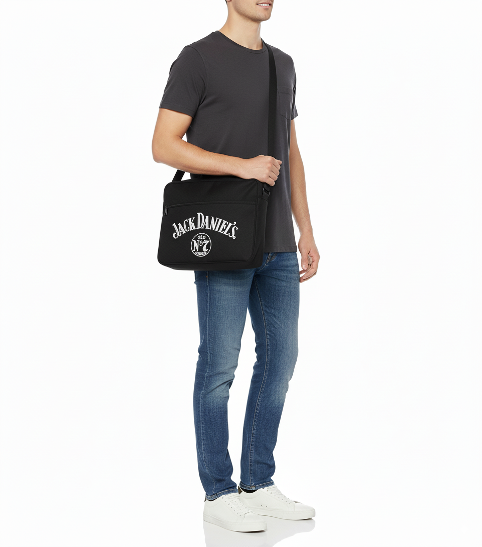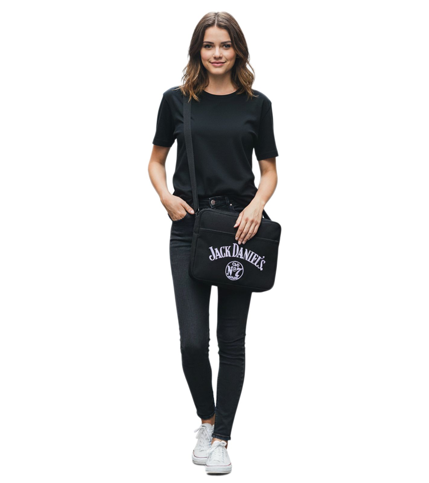 Borsa a tracolla in tela Jack Daniel's, borsa per laptop, accessorio per fan, 38 x 28 x 5 cm, nera