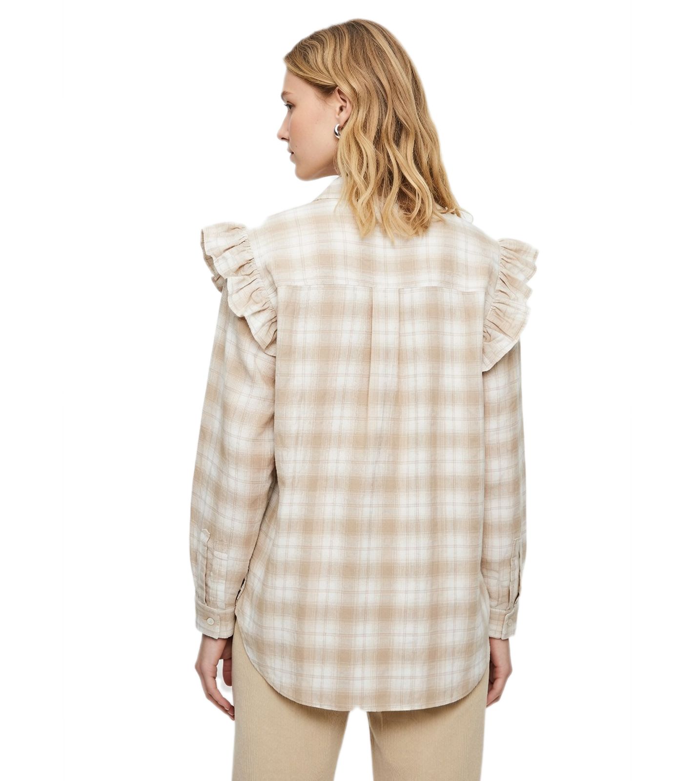 Camicetta estiva a quadri da donna alla moda con volant 976369 Beige/Marrone