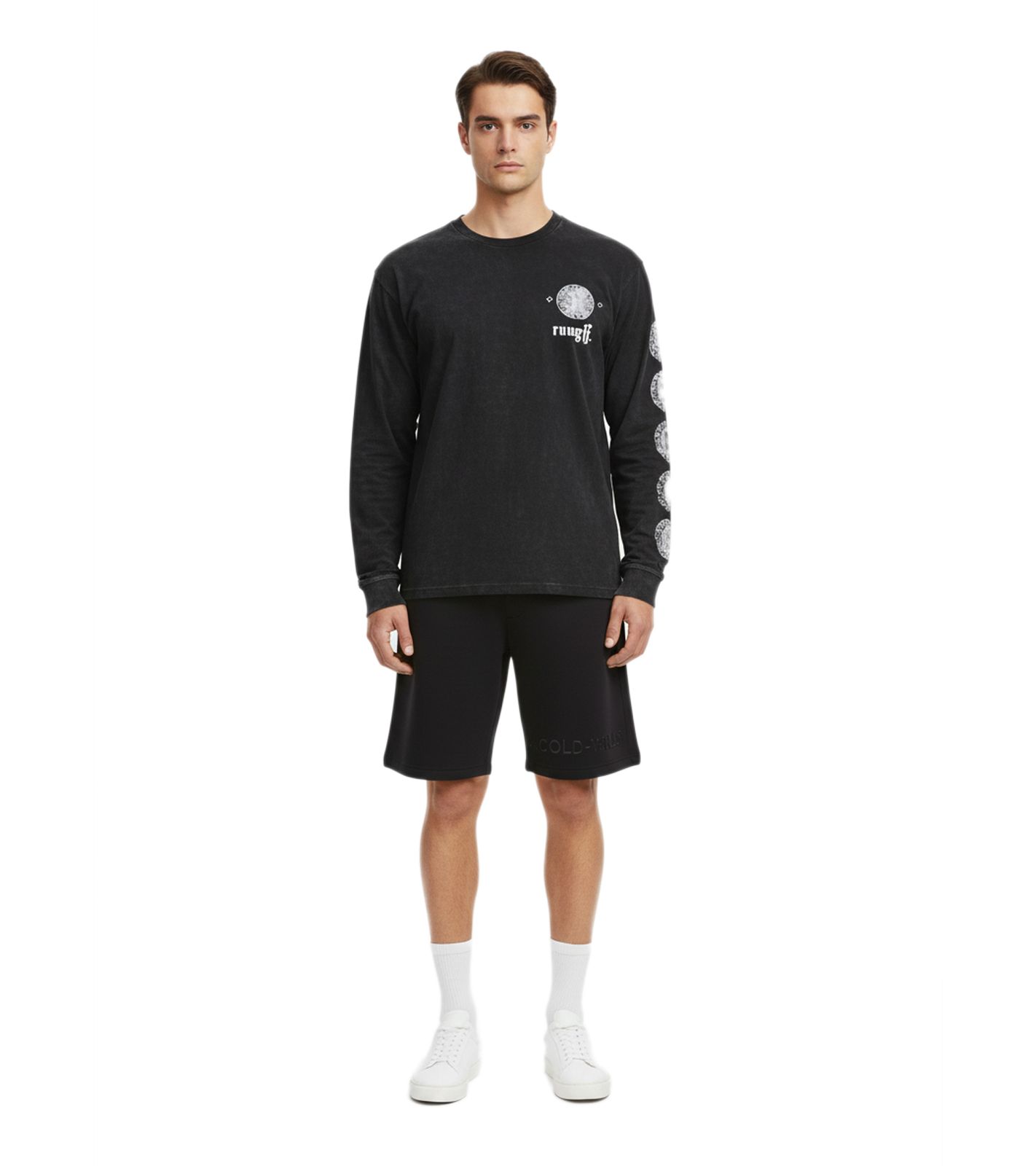 Camicia a maniche lunghe ROUGH Ancient Emblem da uomo con lavaggio distintivo e look urbano, nera