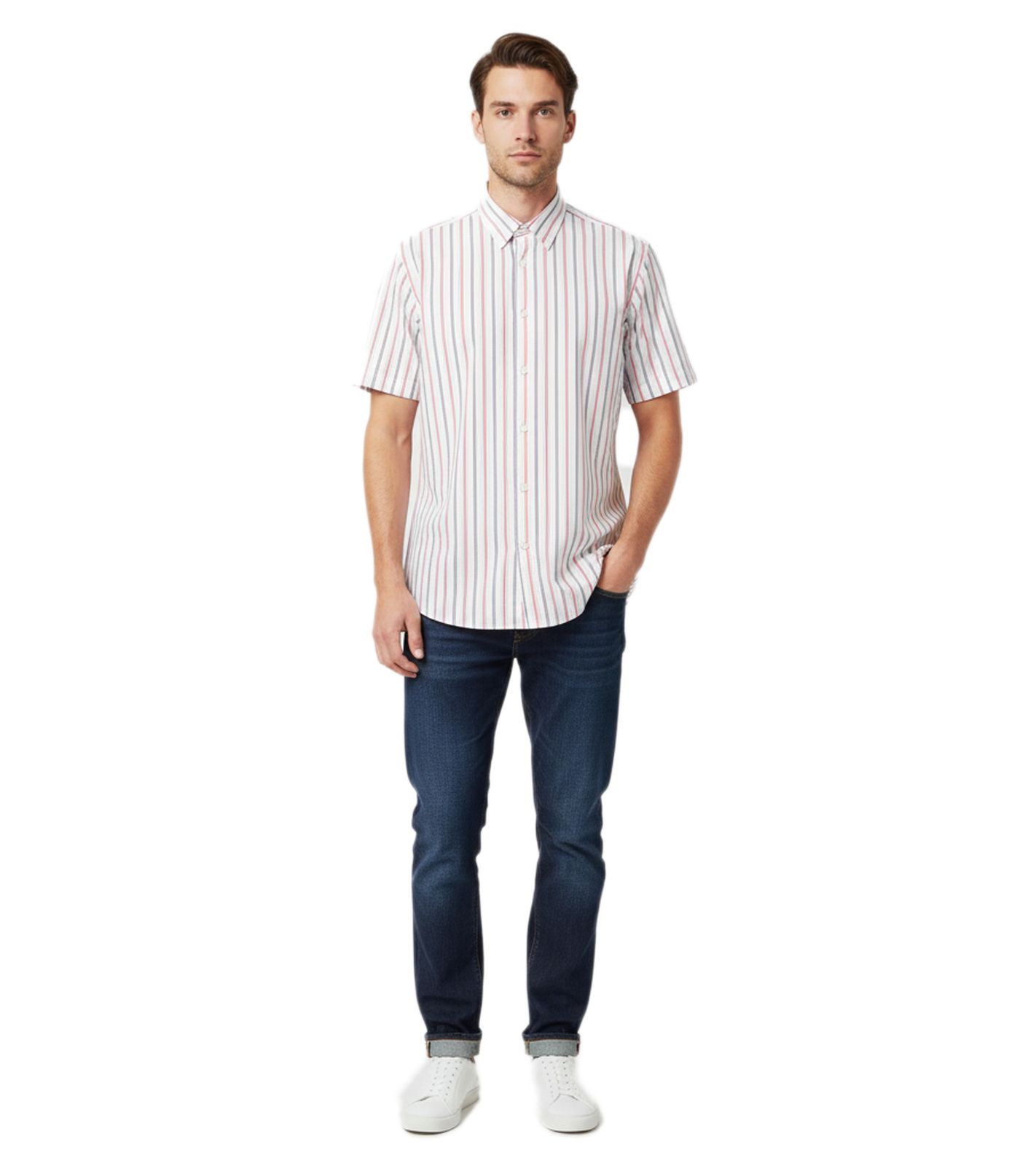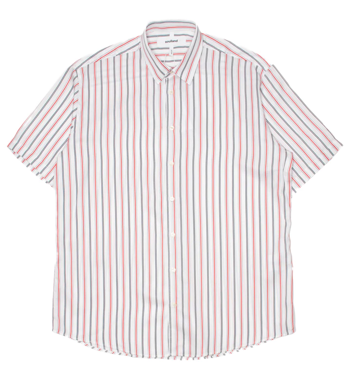Camicia a righe Soulland Basil da uomo - Camicia classica a righe in bianco/rosso di alta qualità