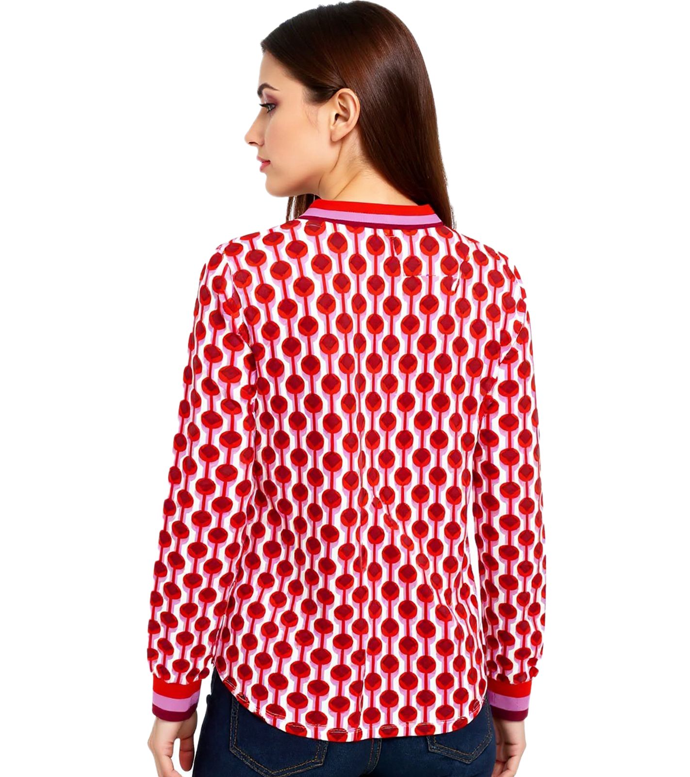 Camicia estiva a maniche lunghe da donna ZWILLINGSHERZ in stile retrò con stampa grafica 31633 Bordeaux/Rosa/Rosso o Arancione/Rosa/Marrone