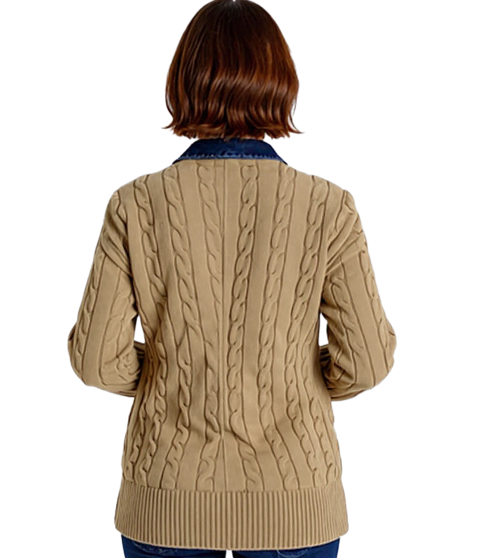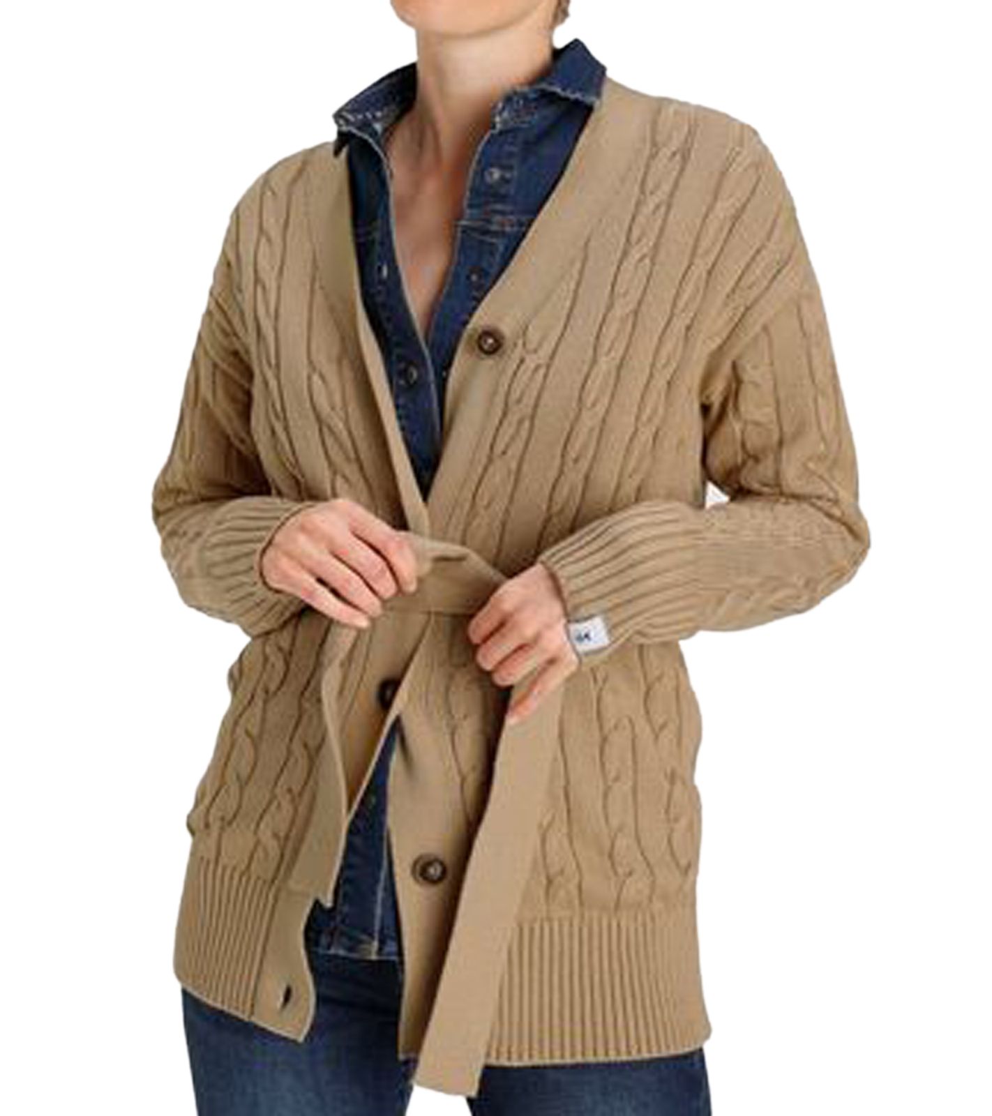 Cardigan da donna DELMAO, giacca in maglia a trecce con laccetto, beige scuro, 82380451