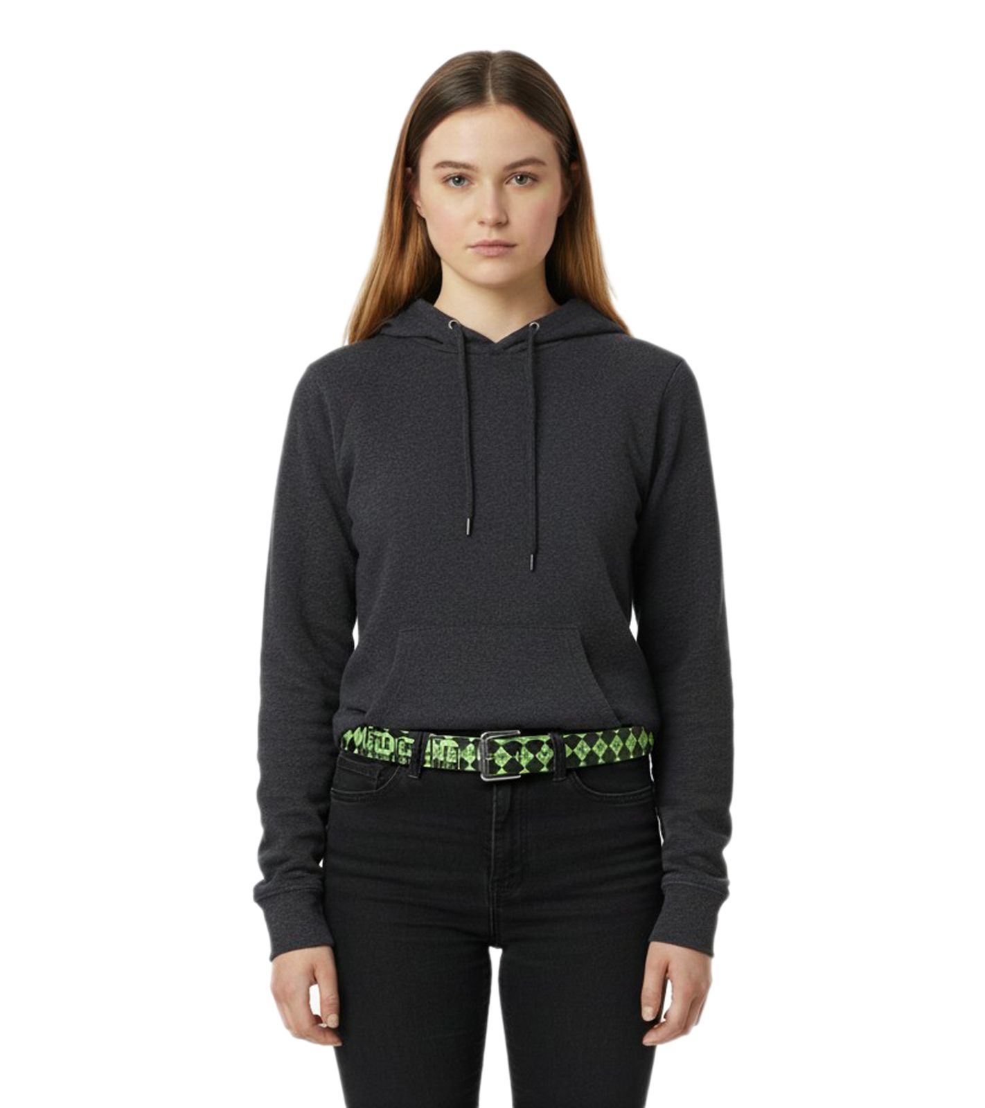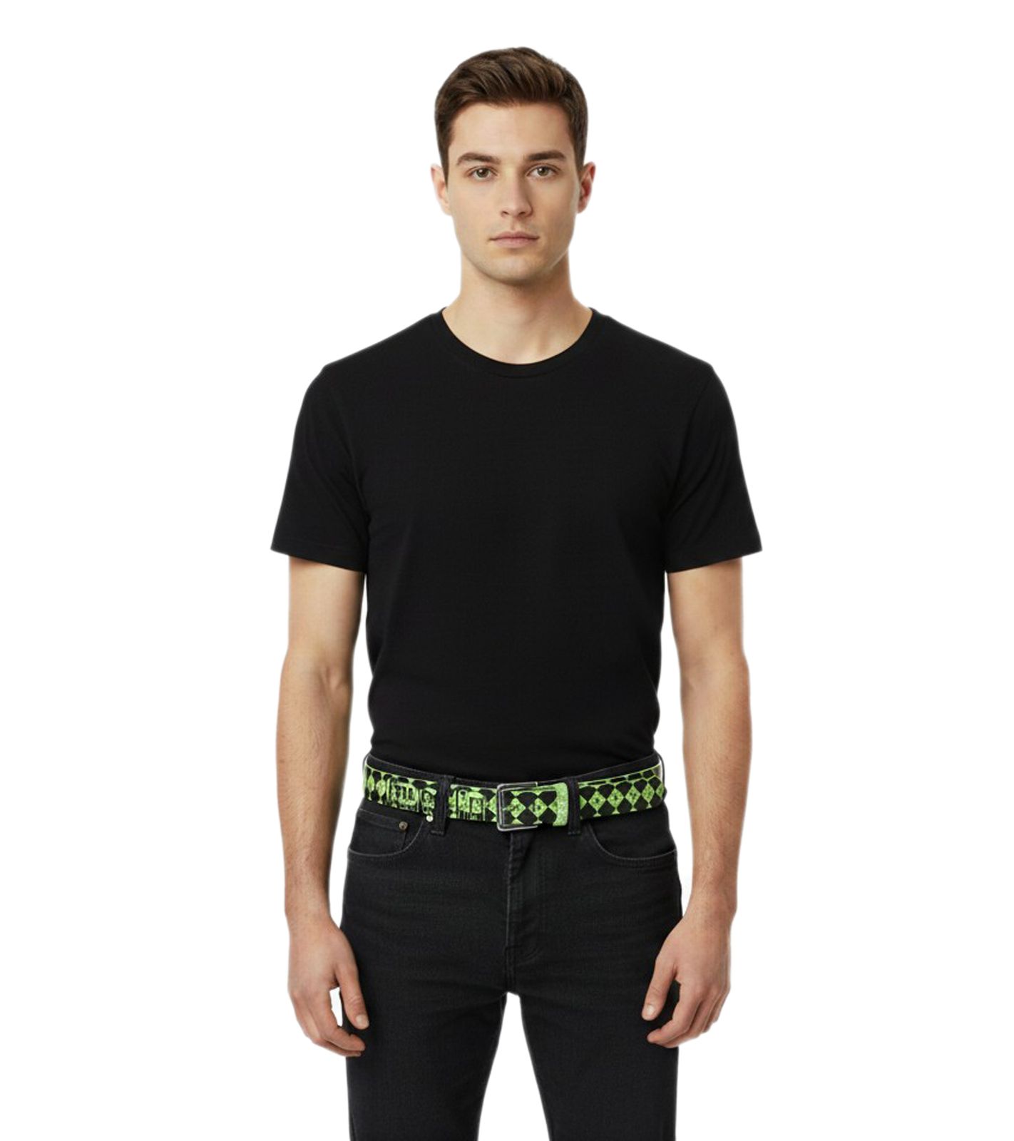 Cintura dei FALL OUT BOY della band alternative rock per uomo e donna, taglia unica, 100 cm, con motivo a rombi e scritta, cintura casual, nero/verde