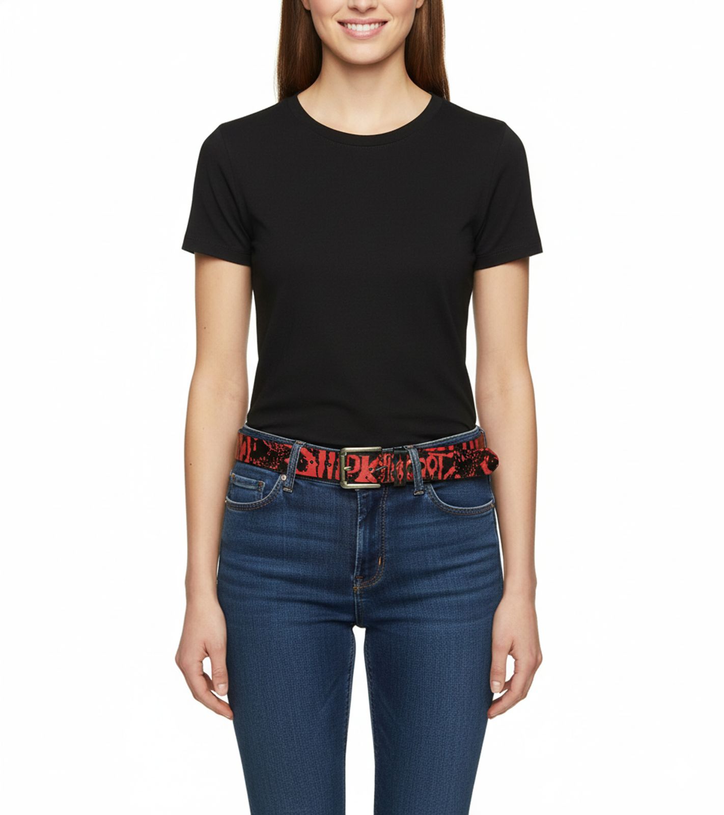 Cintura Slipknot in metallo per donna o uomo, taglia unica, cintura casual regolabile da 95 cm, BT105771SLP, nero/rosso