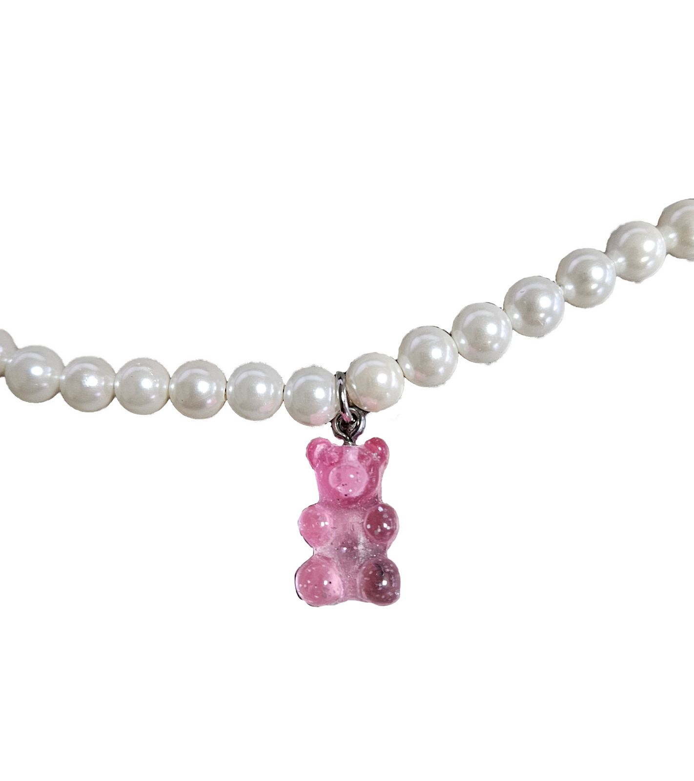 Collana unisex con perline a forma di orso e milkshake alla fragola fainz