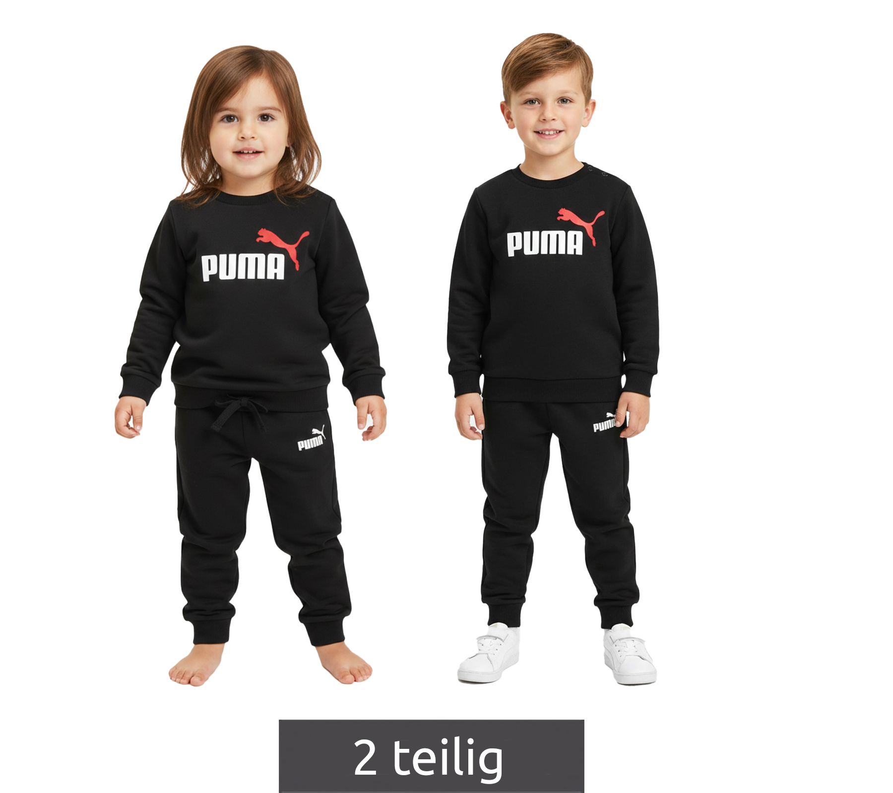 Comoda tuta da jogging PUMA per bambini e bambine, set da 2 pezzi: pantaloni della tuta, maglione girocollo, set in cotone 627915 01 Nero