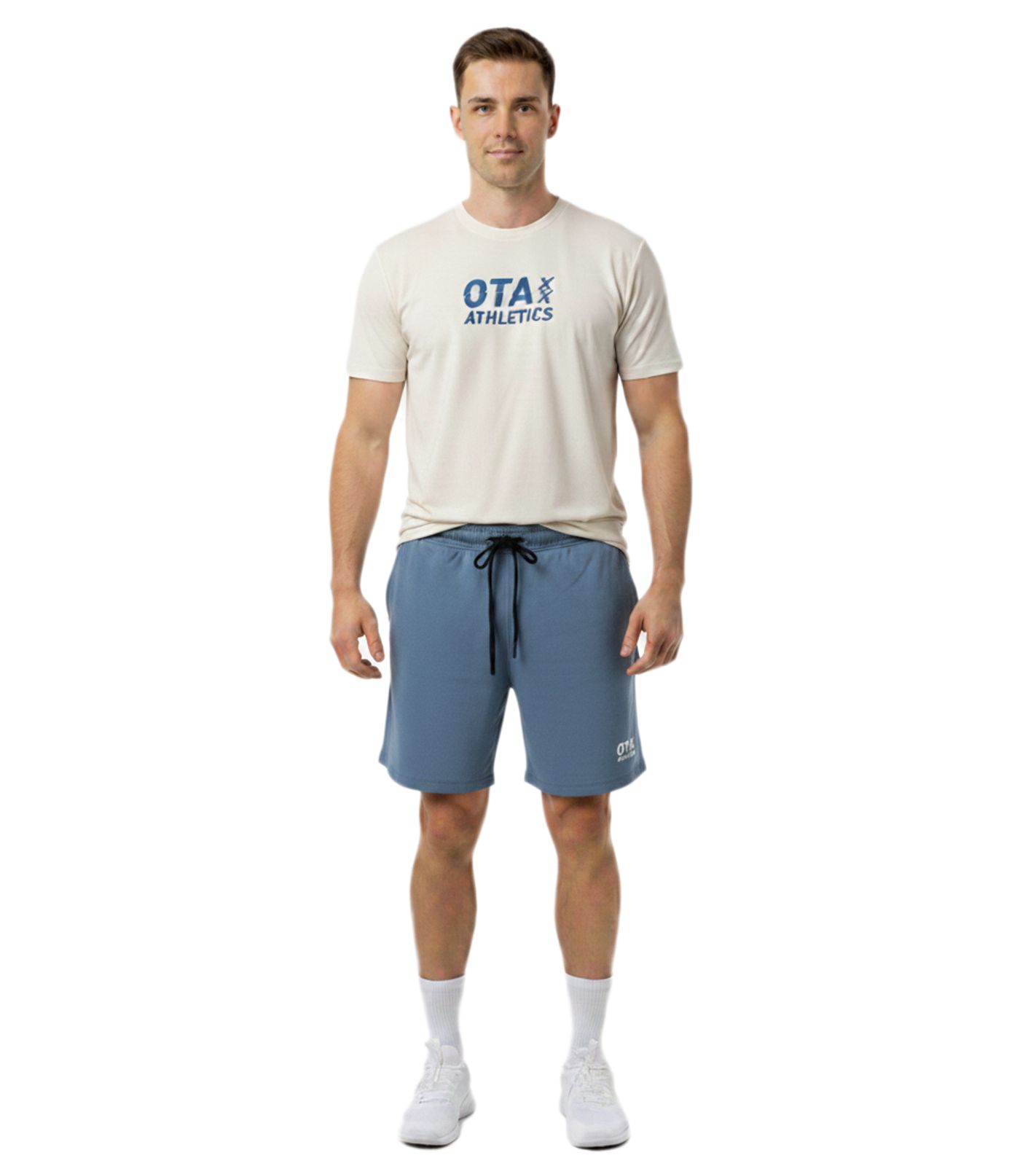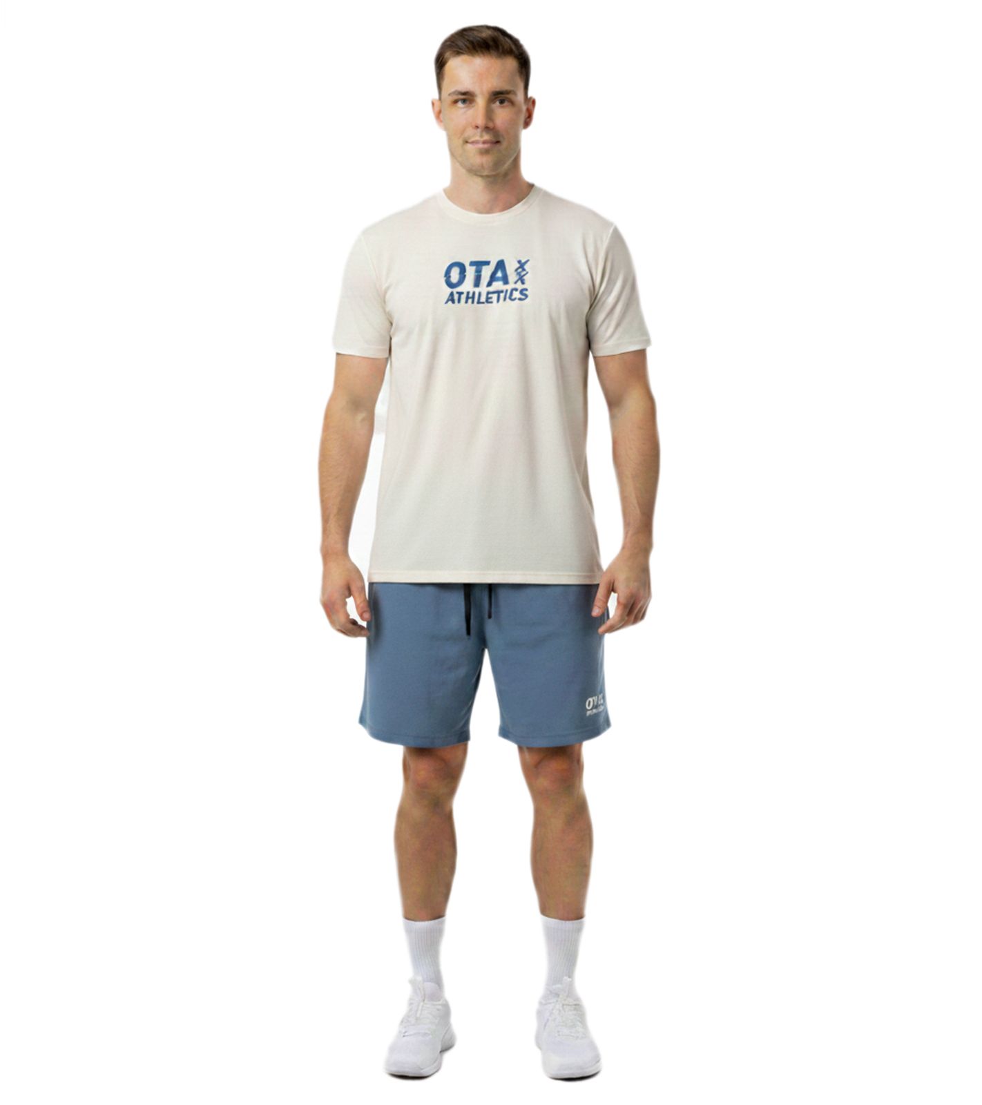 Completo sportivo da uomo ON THAT ASS Armand, composto da 2 pezzi, con maglietta e pantaloncini, colore beige/blu.