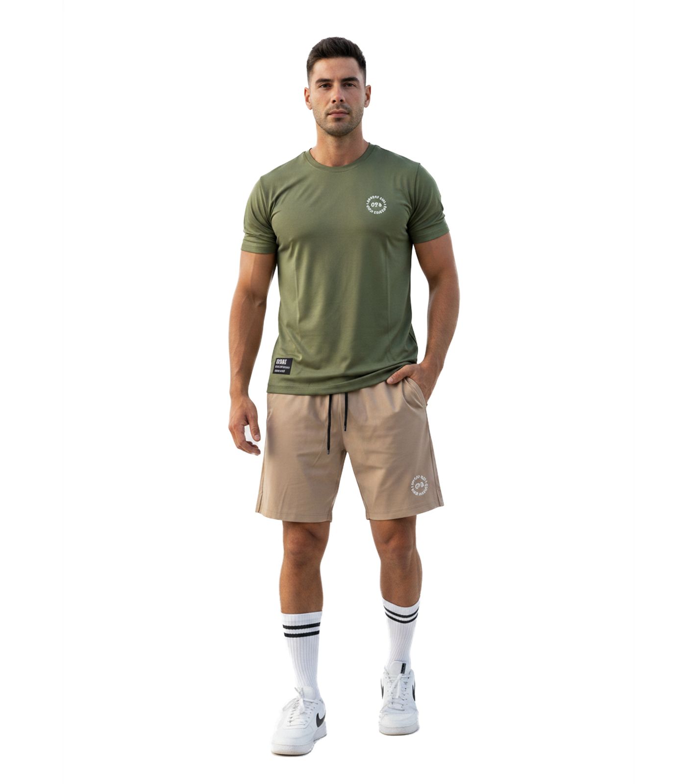 Completo sportivo da uomo ON THAT ASS Bolt, composto da t-shirt e pantaloncini, colore verde/beige.