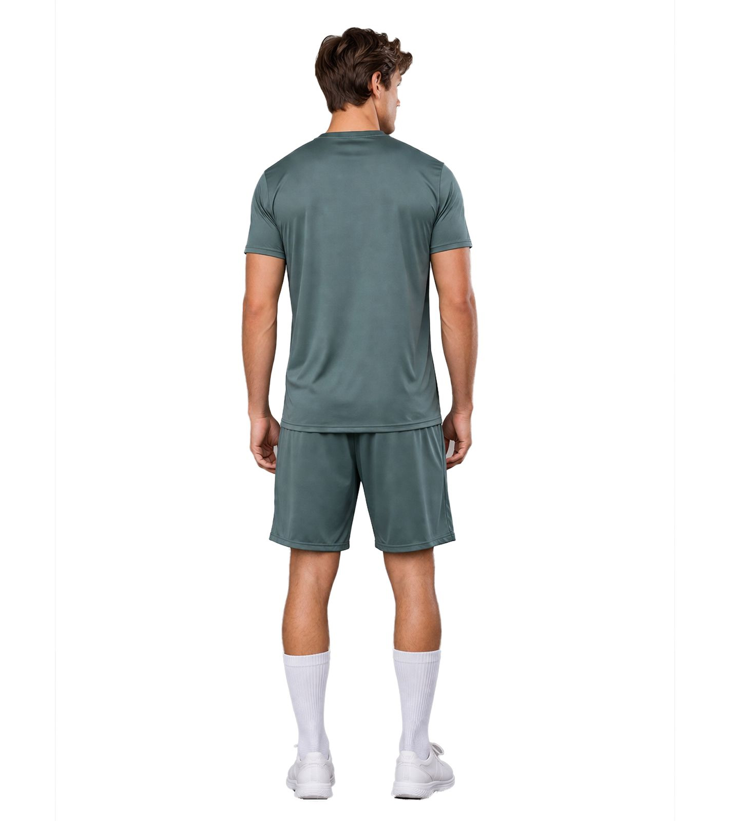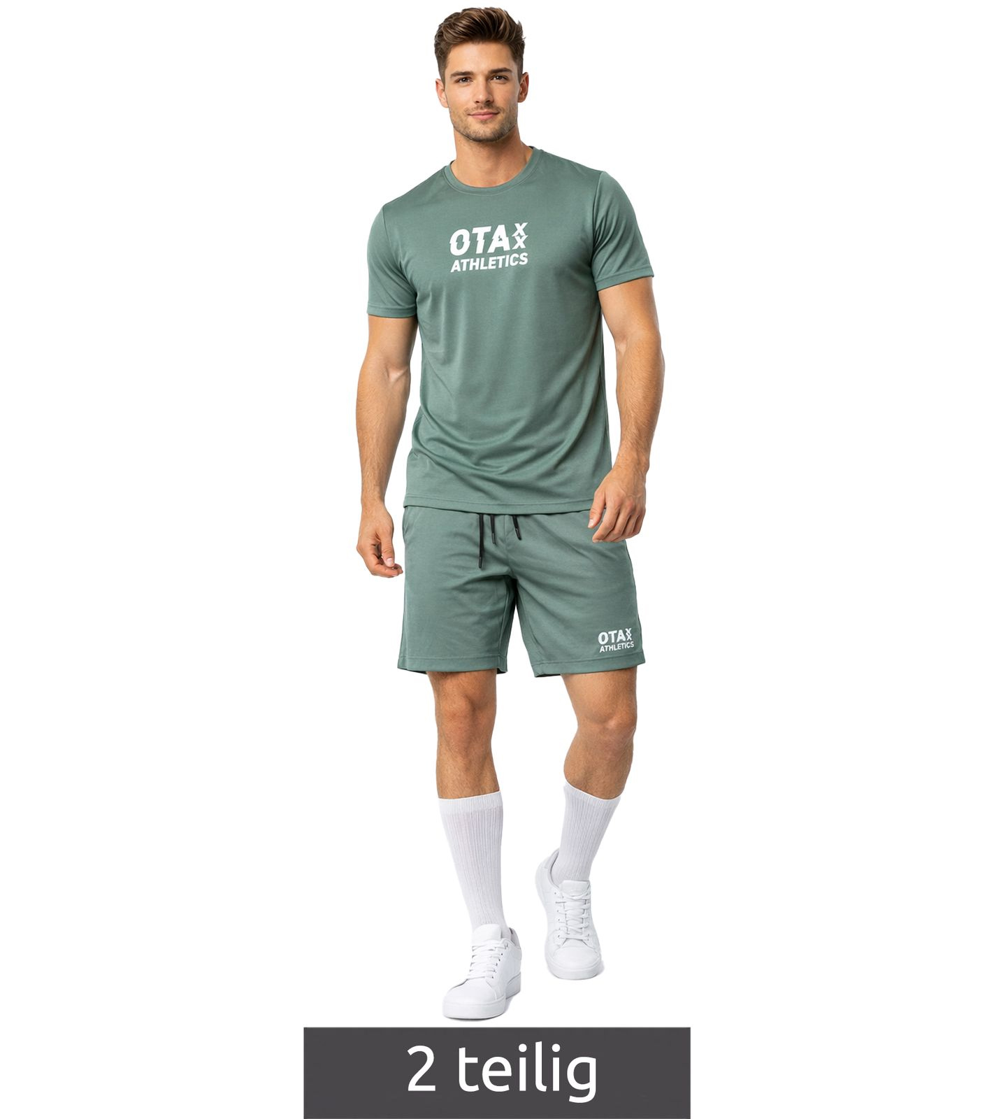 Il completo sportivo OTAX unisce prestazioni atletiche a un design minimalista. Il completo è composto da una t-shirt leggera e traspirante e pantaloncini abbinati in un moderno verde salvia.