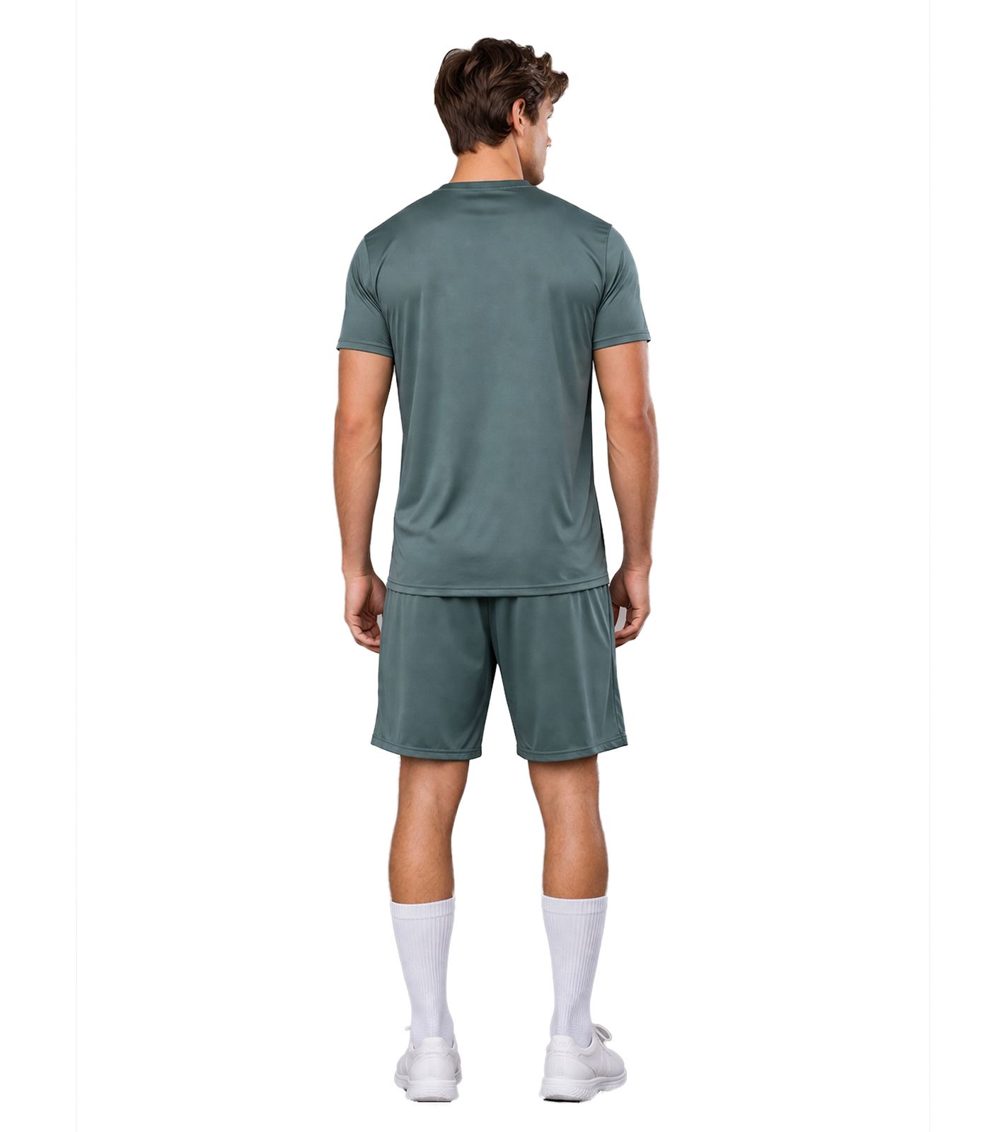 Il completo sportivo OTAX combina prestazioni atletiche con un design minimalista. Il set è composto da una t-shirt leggera e traspirante e pantaloncini abbinati in un moderno colore verde salvia.