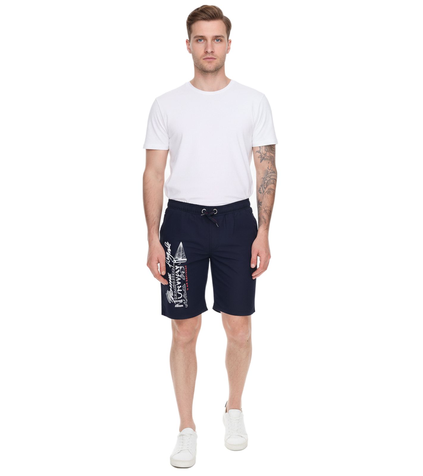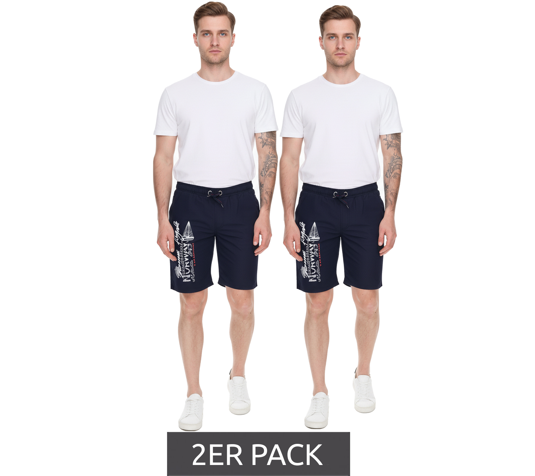 Confezione da 2 boxer da bagno da uomo GEOGRAPHICAL NORWAY Quara con stampa del logo, pantaloncini da bagno con tasche, pantaloncini da bagno 001 Blu navy
