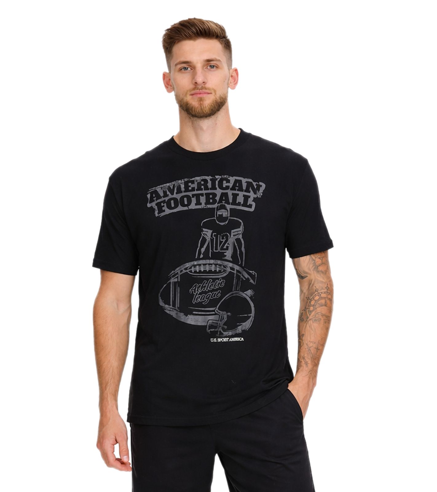 -91% Confezione da 2 T-shirt basic da uomo U.S. SPORT AMERICA in cotone, girocollo, manica corta, blu/nero