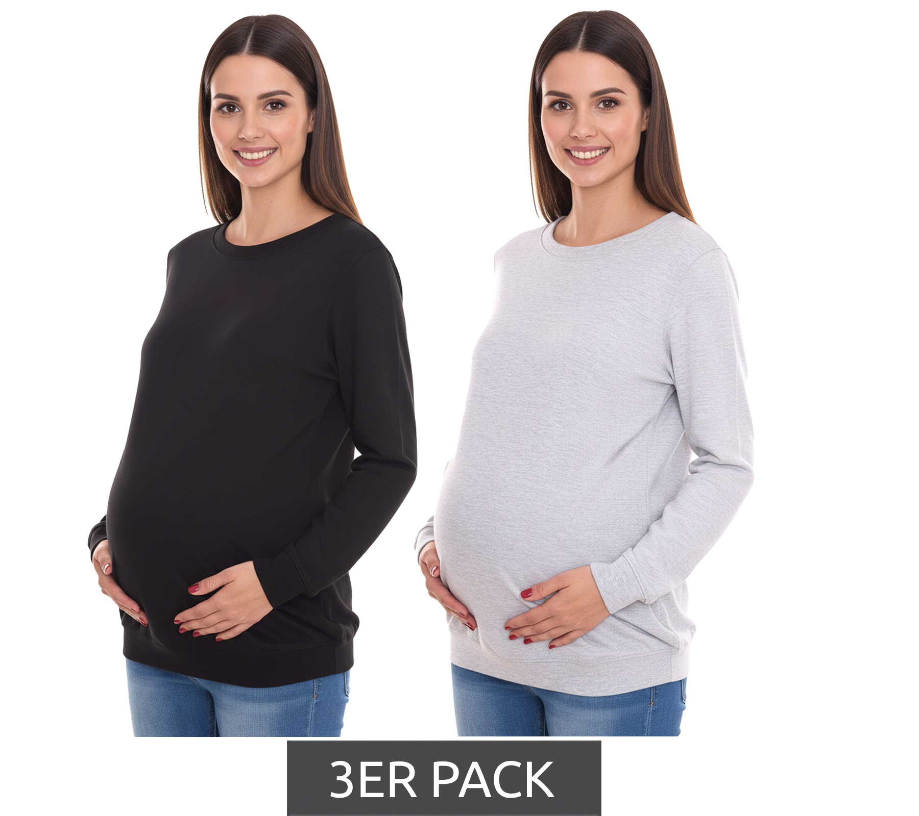 Confezione da 3 magliette premaman semplici da donna per 9 mesi, in grigio o nero