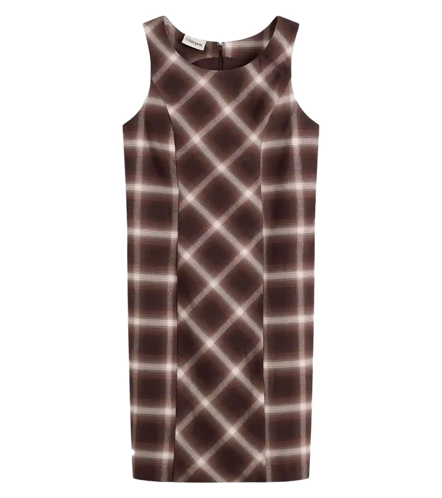Elegante abito da donna a quadri, abito da sera, mini abito, senza maniche, 938009 Marrone/Bianco