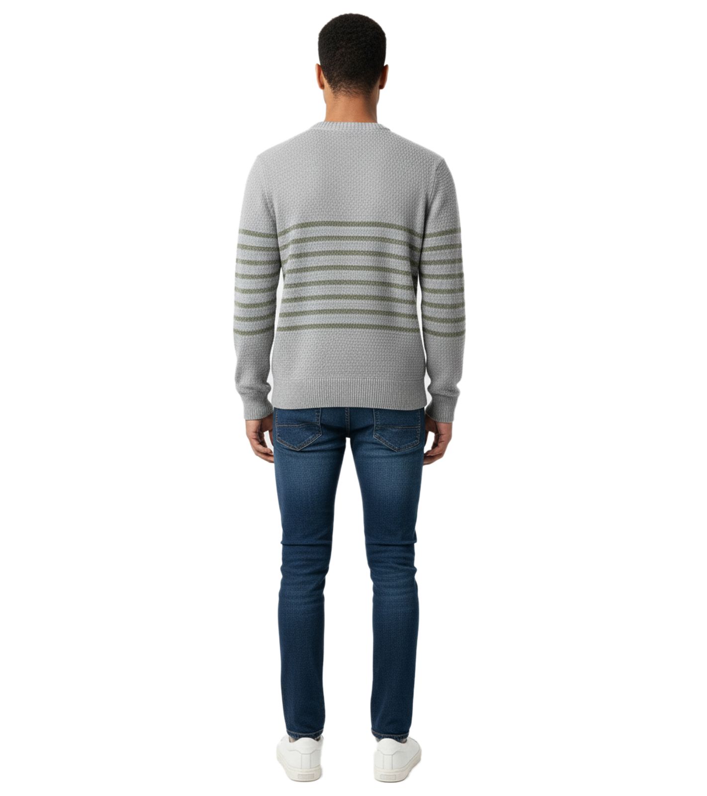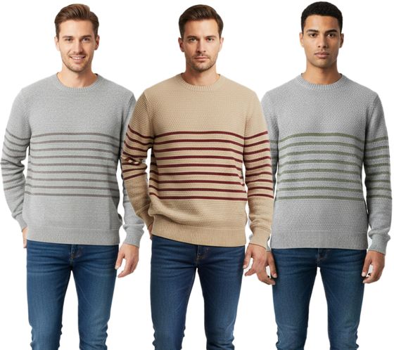 Elegante maglione a righe da uomo ESPRIT, girocollo, pullover in cotone, disponibile nei colori grigio/grigio scuro, beige/bordeaux o grigio/verde
