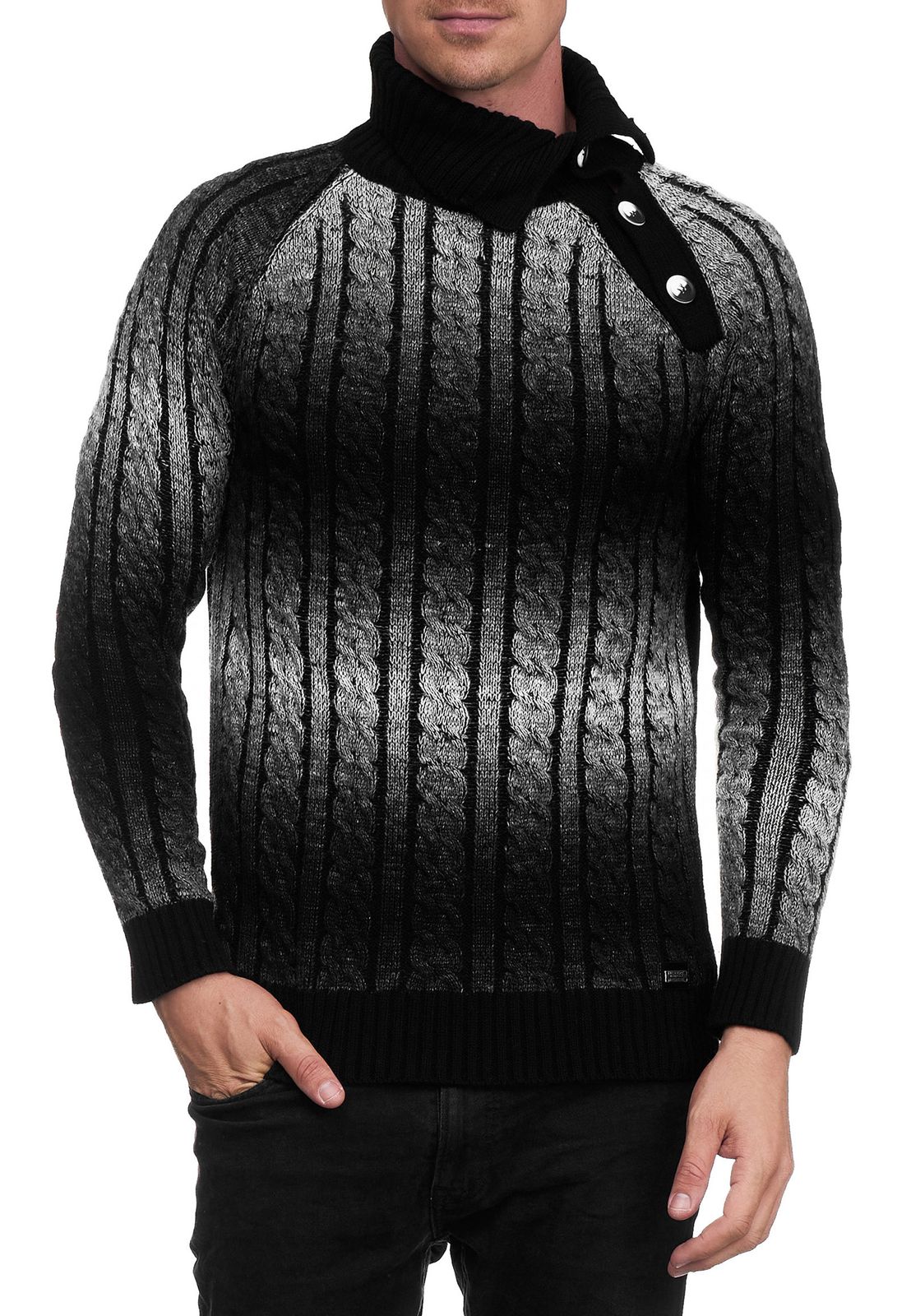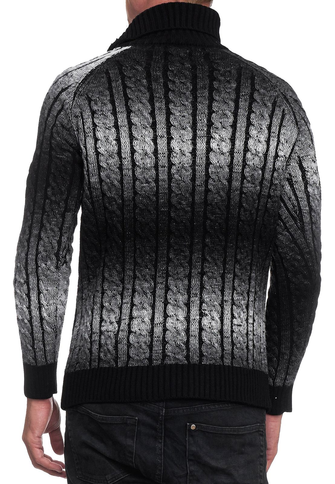 Elegante maglione da uomo in maglia con collo alto e maglia con trama sfumata 13368 Nero