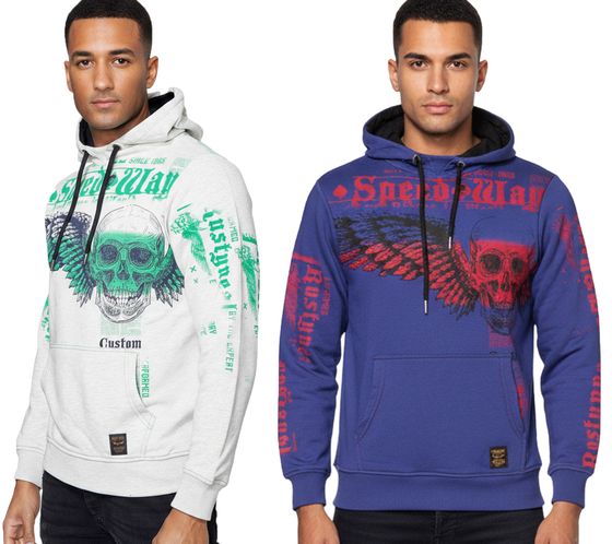 Questa elegante felpa con cappuccio da uomo colpisce per le sue grandi stampe trendy in un colore a contrasto.