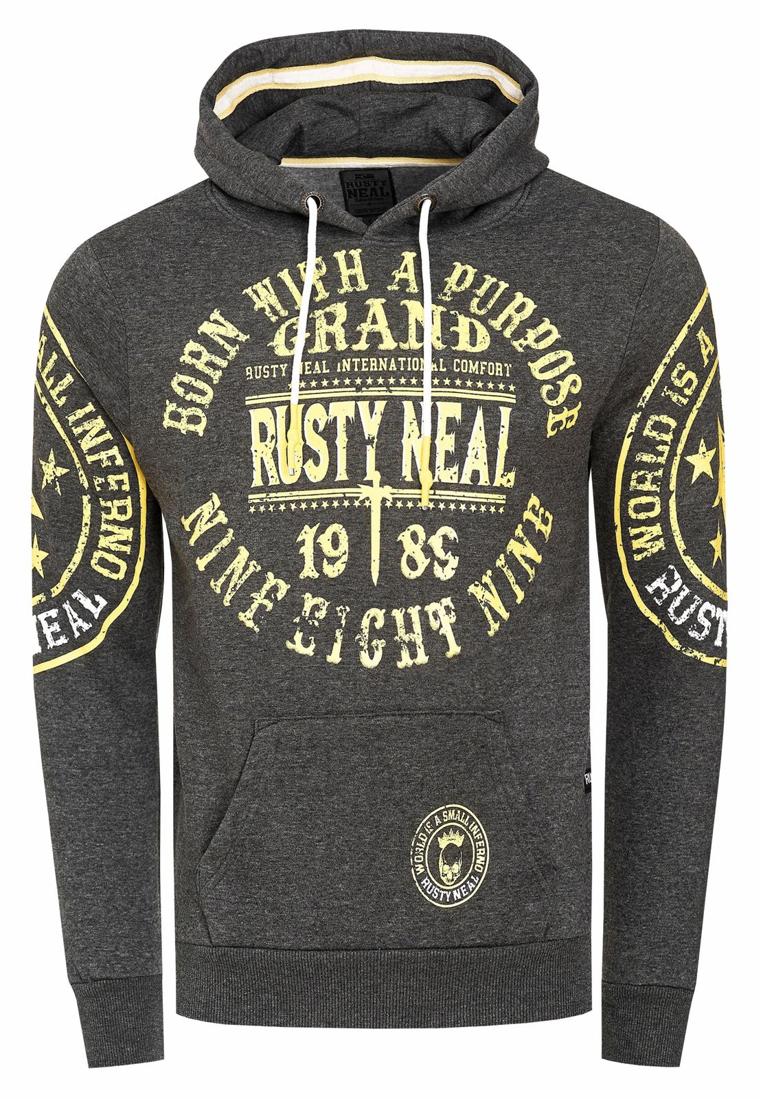 Felpa con cappuccio da uomo versatile con fantastiche stampe del marchio Felpa con cappuccio 19078 Antracite