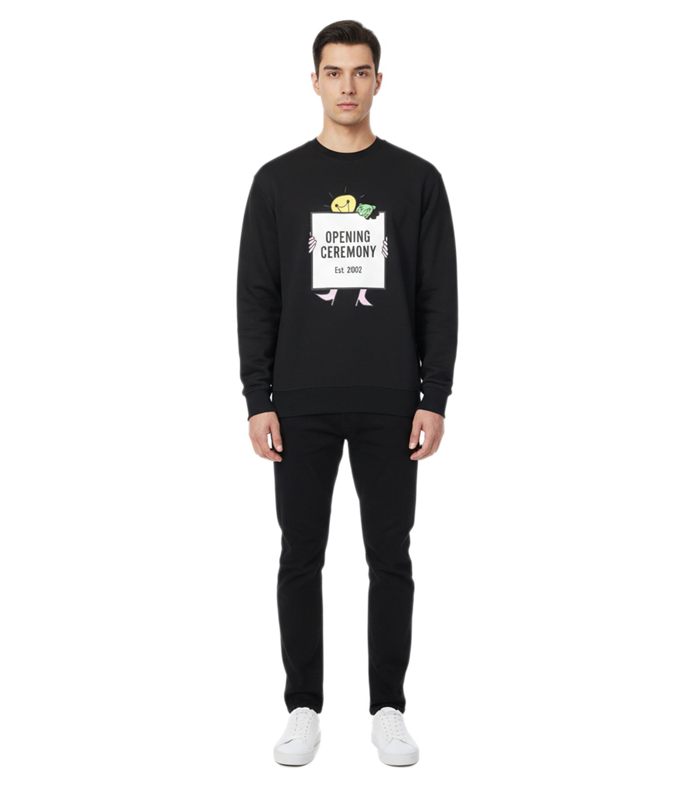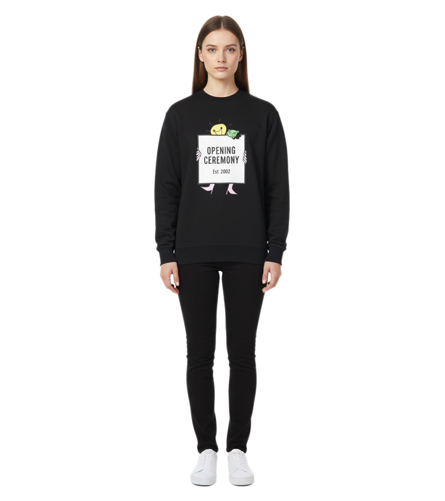 Felpa girocollo unisex di design Opening Ceremony con stampa del logo accattivante, nera