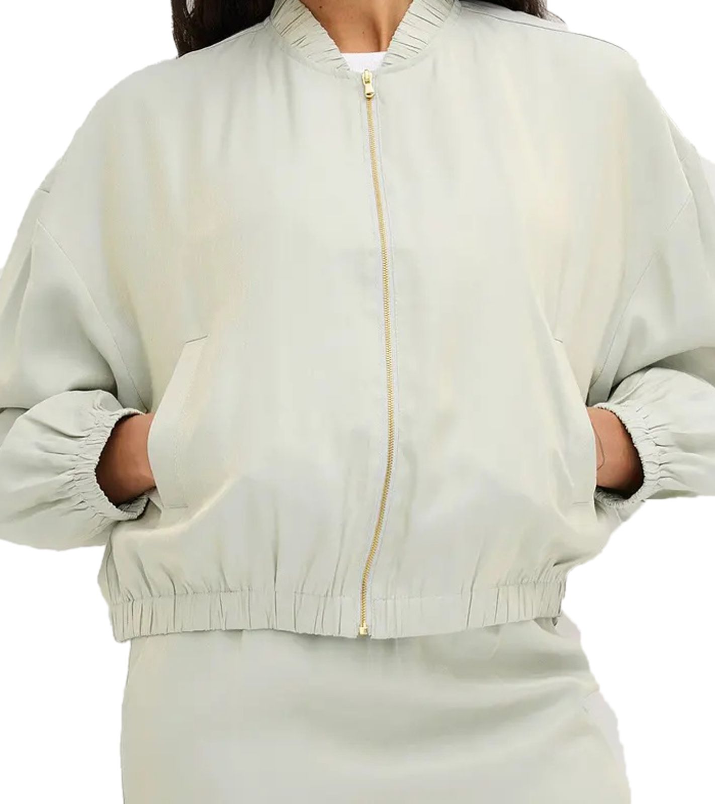 Giacca da donna lucida, bomber in raso, oversize, 913821, menta/oro