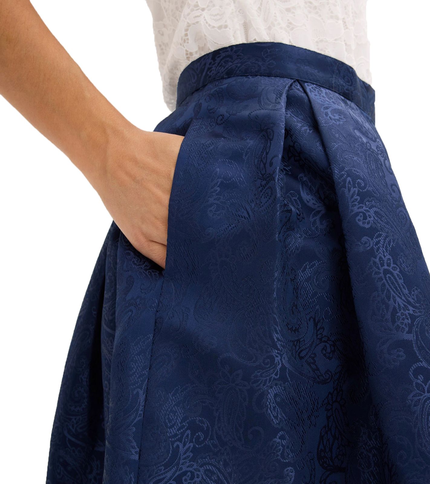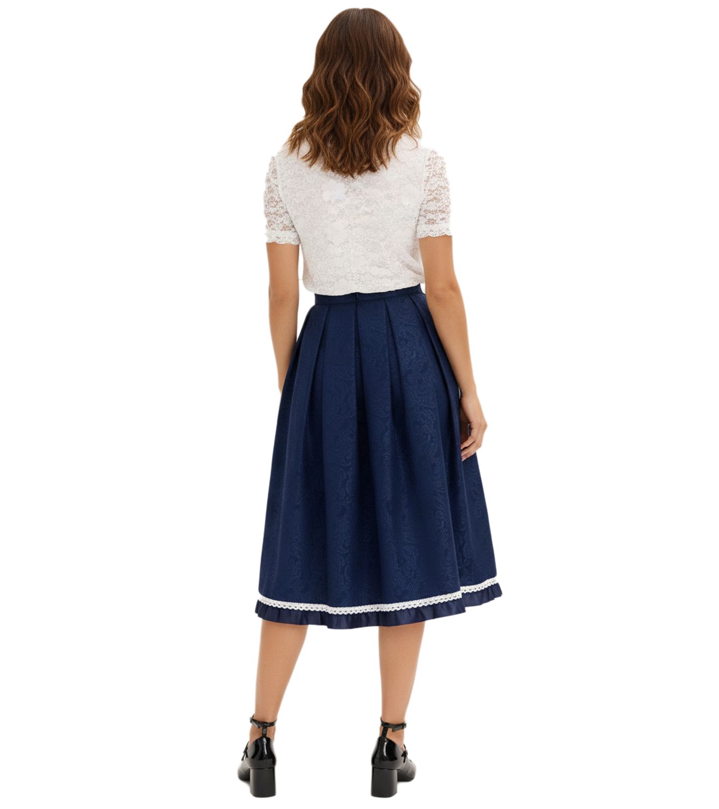 Gonna Dirndl da donna alla moda, gonna tradizionale con motivo paisley e pizzo 905168 blu scuro