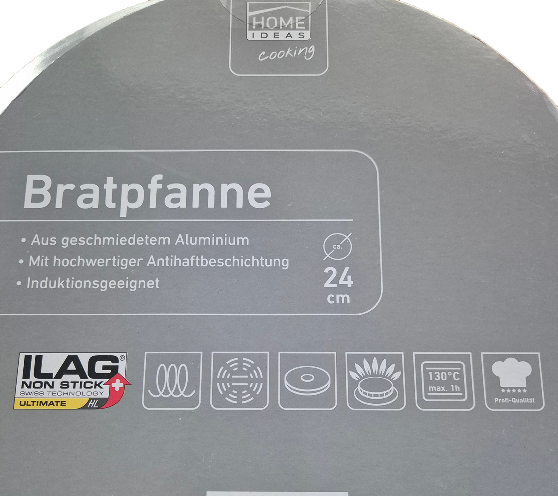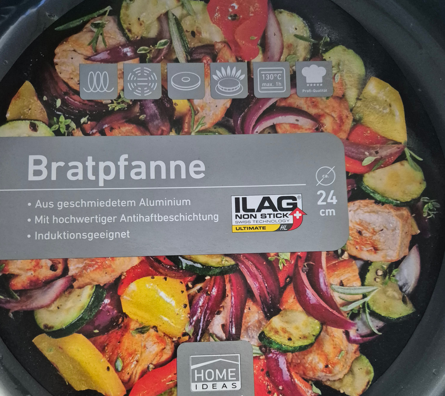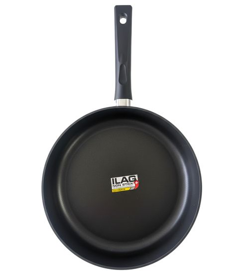 HOME IDEAS Padella in alluminio forgiato, adatta all'induzione, rivestimento antiaderente, 24 cm, argento/nero