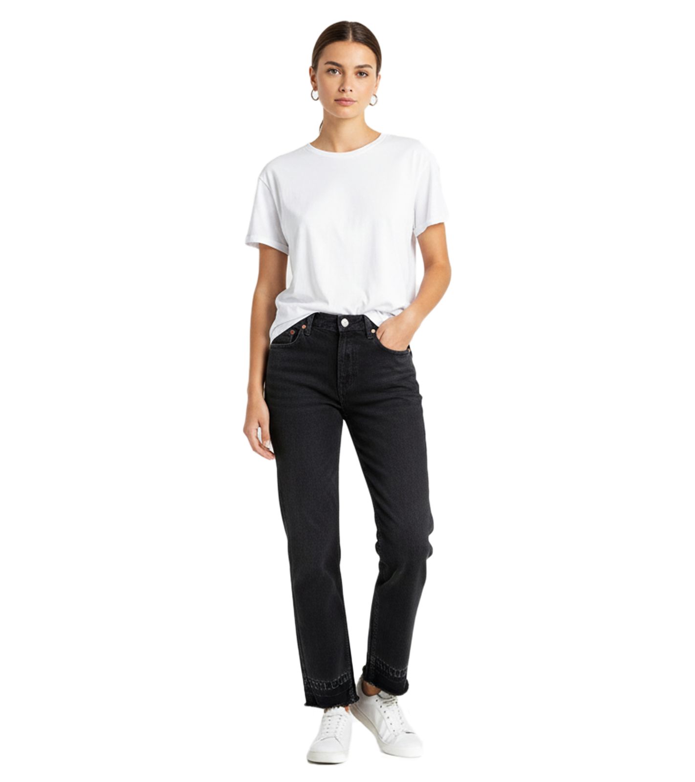 Jeans Harmony Dorian Vintage Antifit da donna in denim di alta qualità con orlo dal dettaglio unico, neri