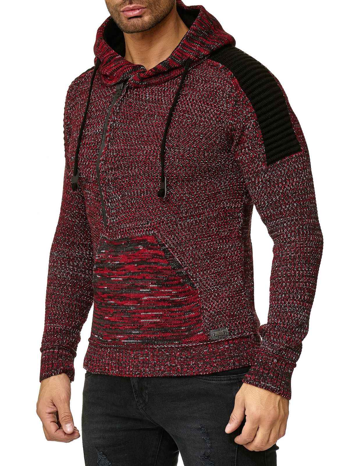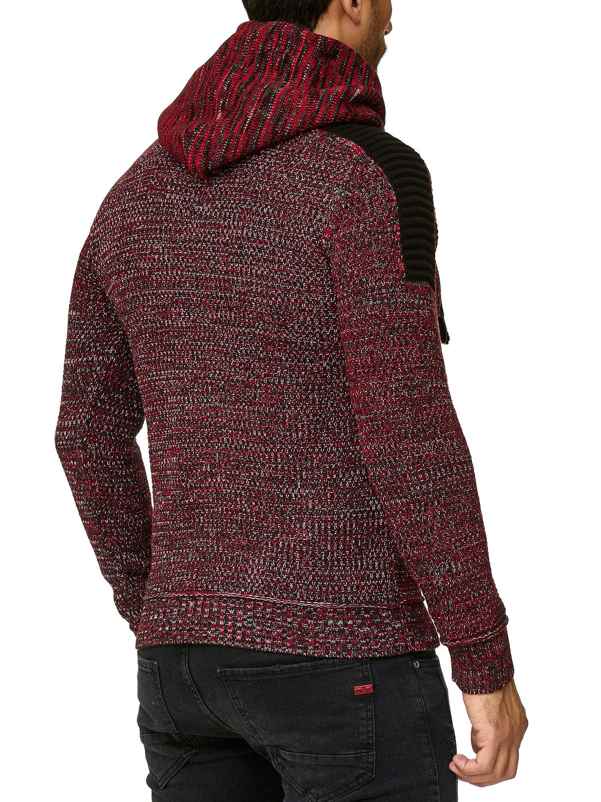 Maglione con cappuccio in maglia da uomo moderno, pullover in maglia grossa, giacca in maglia 13290 rosso