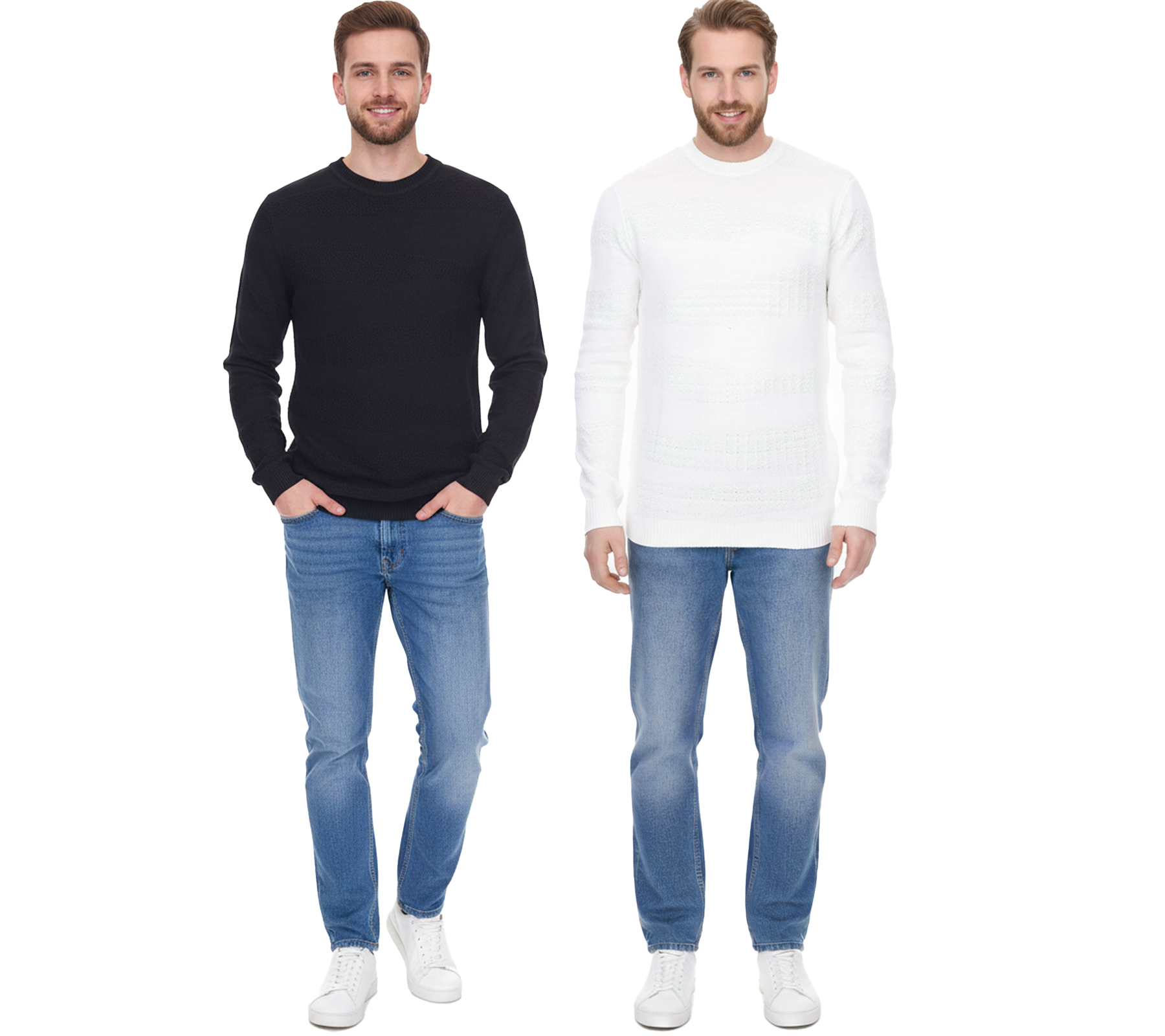Maglione lavorato a maglia da uomo Denim Project con motivo sottile, maglione di cotone, maglione invernale, camicia a maniche lunghe DP-10023-073 bianco o nero