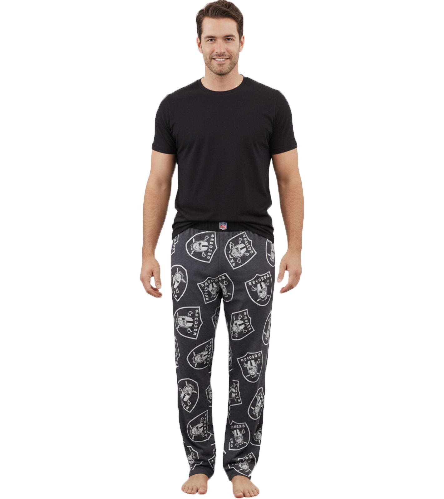 Pantaloni da salotto da uomo RE:COVERED X NFL Las Vegas Raiders con logo della squadra, pantaloni da pigiama in cotone, RCNFL1406 Grigio