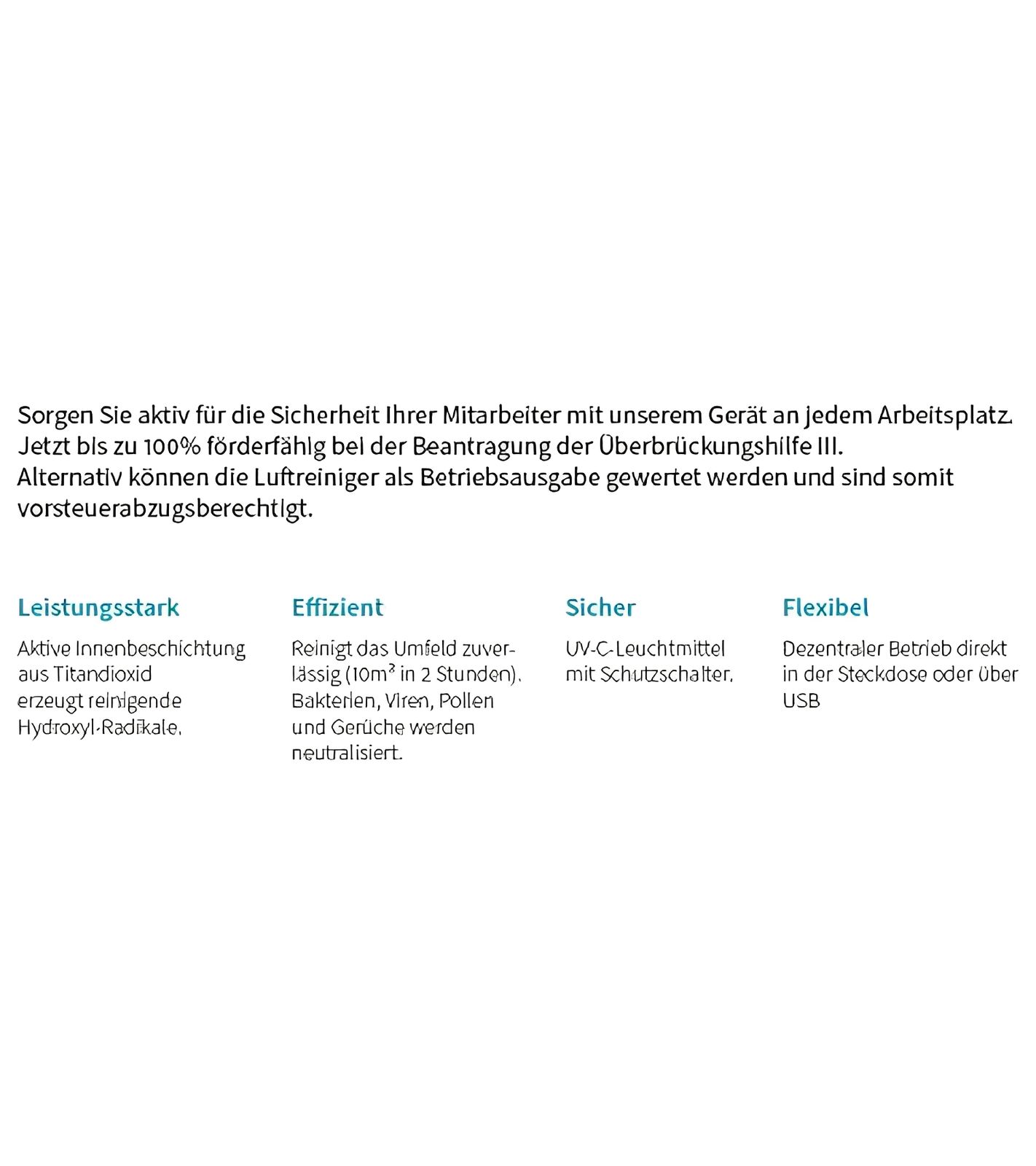 Purificatore d'aria portatile UV-C, pronto all'uso ovunque, immediatamente!