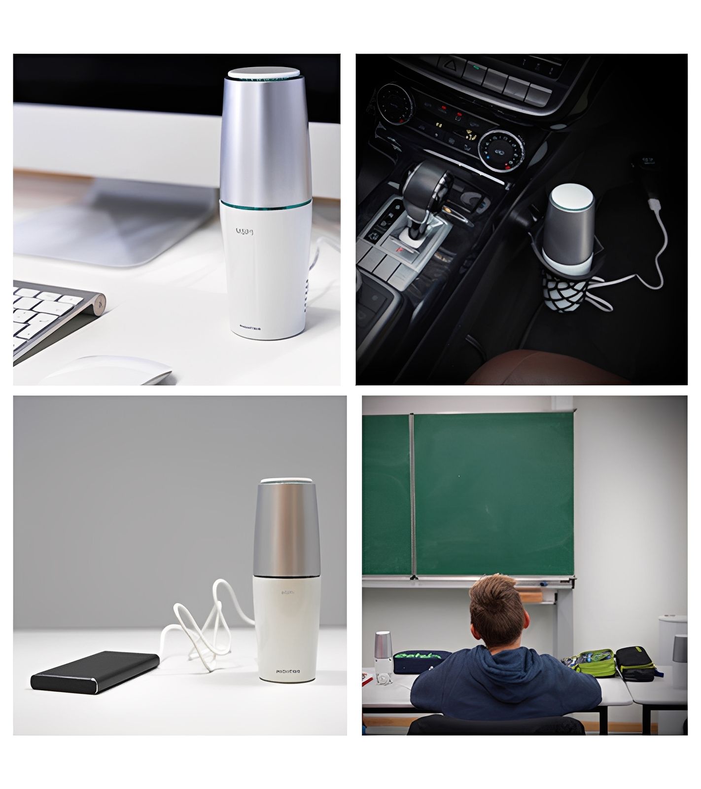 Con il purificatore d'aria UV portatile MSP1, puoi eliminare batteri, virus, spore fungine, residui di solventi, ecc. nelle tue immediate vicinanze.